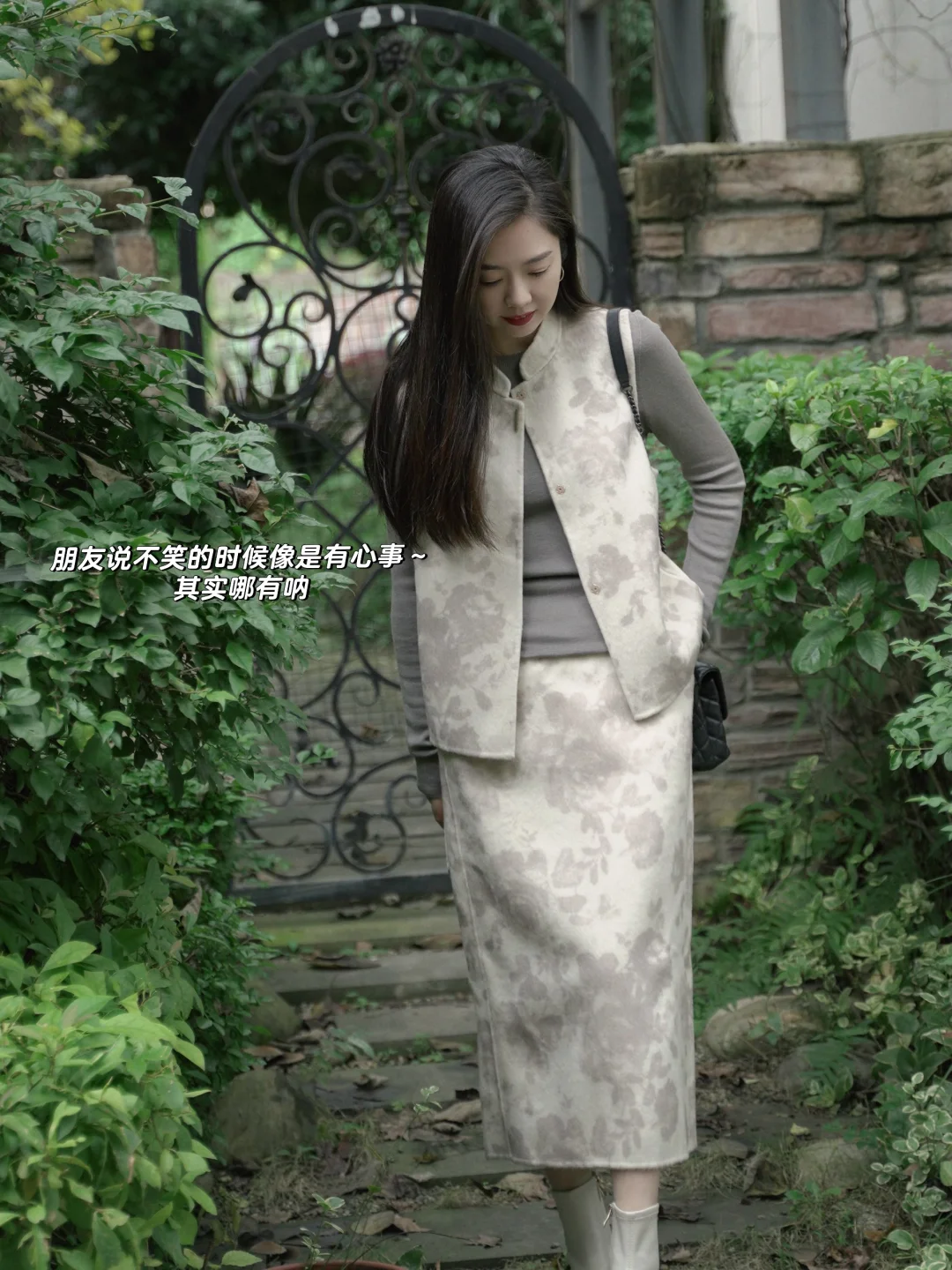 真是年纪大了 一感冒精气神都会弱很多[哭惹R] 简单po一下我喜欢的新中式马甲套装 尤其这个花色 糯糯的好温婉 日常穿起来很美 很有舒心感 再讲具体一点:很显瘦(这个优点太实际了)[大笑R] 其他废话:如图[萌萌哒R]