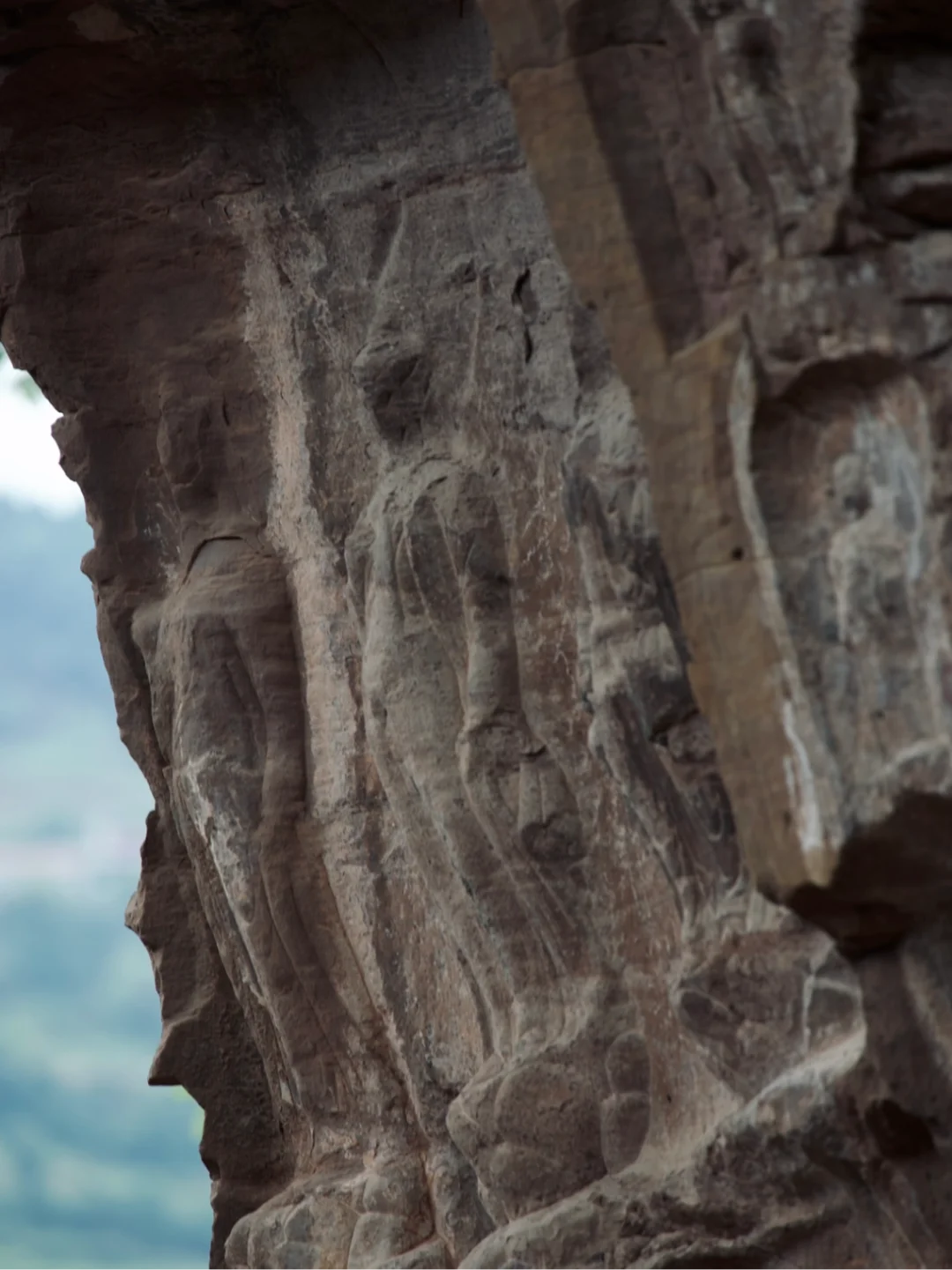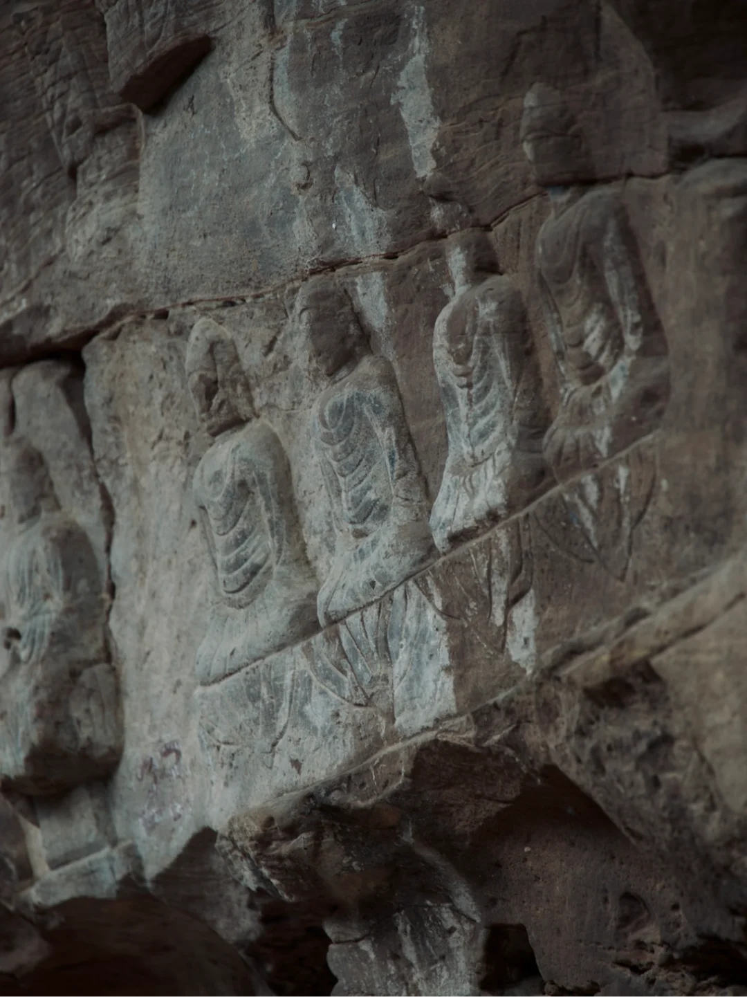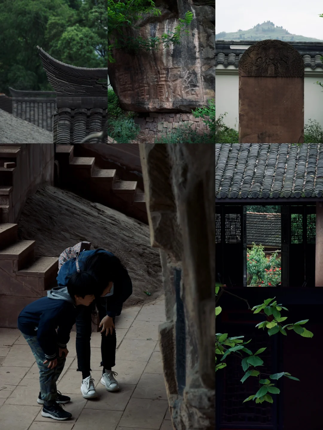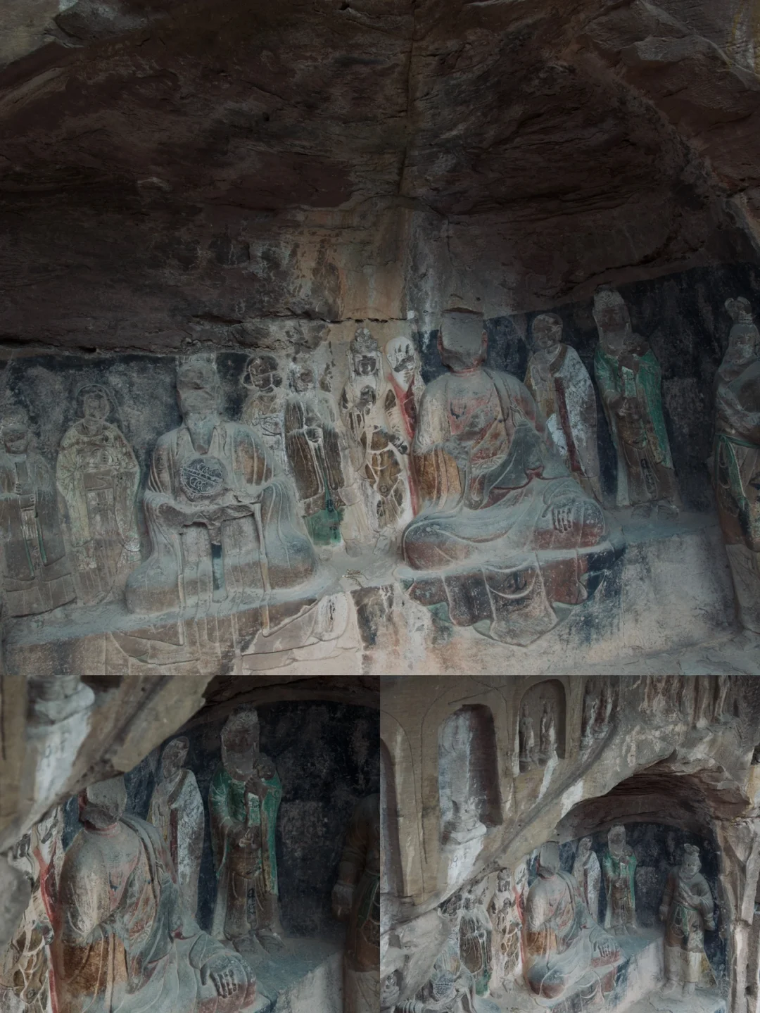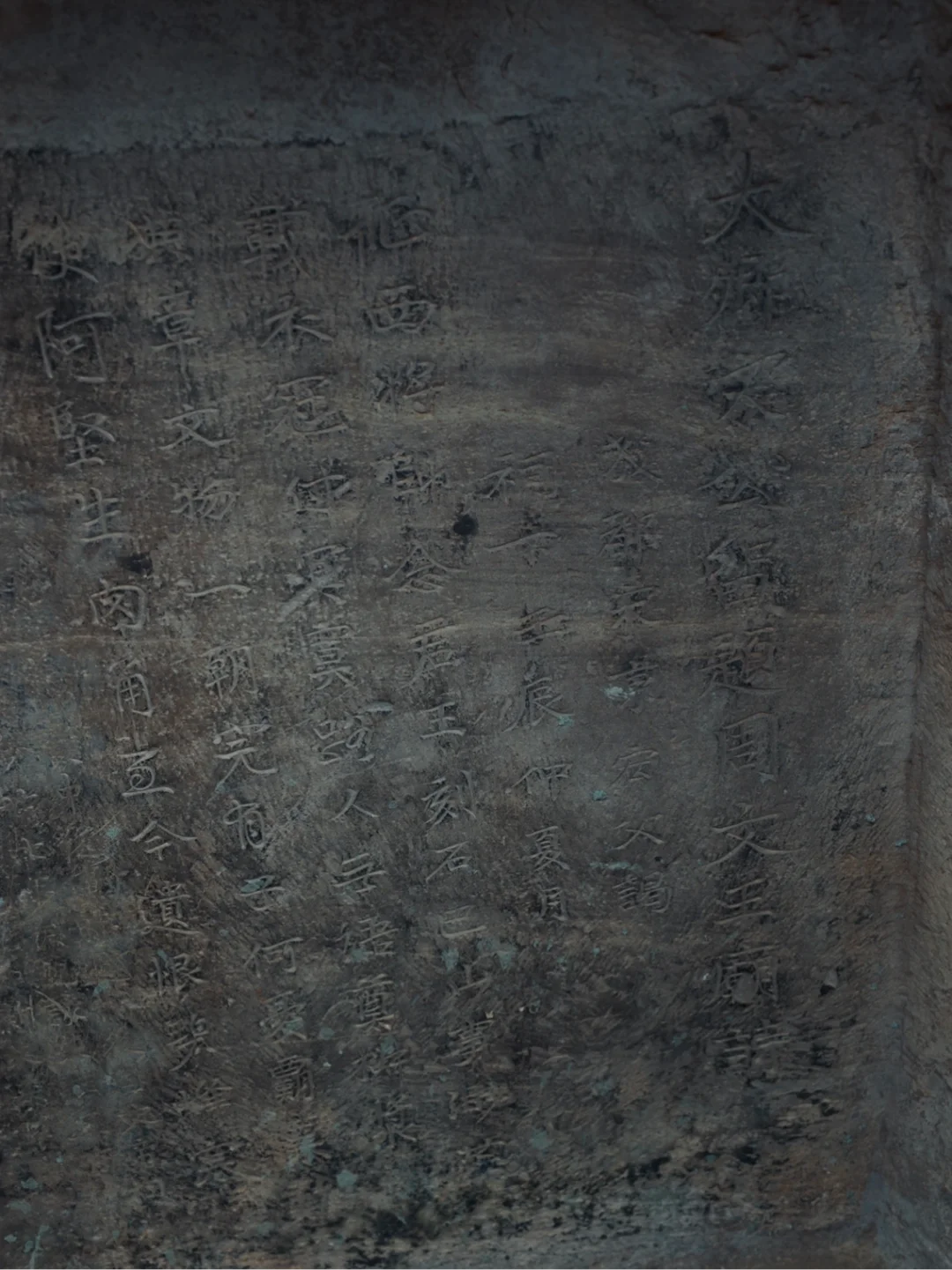 2️⃣天落石石刻群:这块石头被当地人称为“天落石”🪨,其中文王碑上面用楷书阴刻着1310多个字,它就是被史学家们称为的“北周文王碑”。上面的字迹依然可见。其中有一个最大的🗿龛窟,刻于唐代,是一组刻像,整组刻像围绕中间一佛一道,人物造像数量最多,也比其它龛内的造像精美👏,服饰华丽,颜色至今可见。除此之外,石刻群还有宋朝以及清朝的石刻雕像。