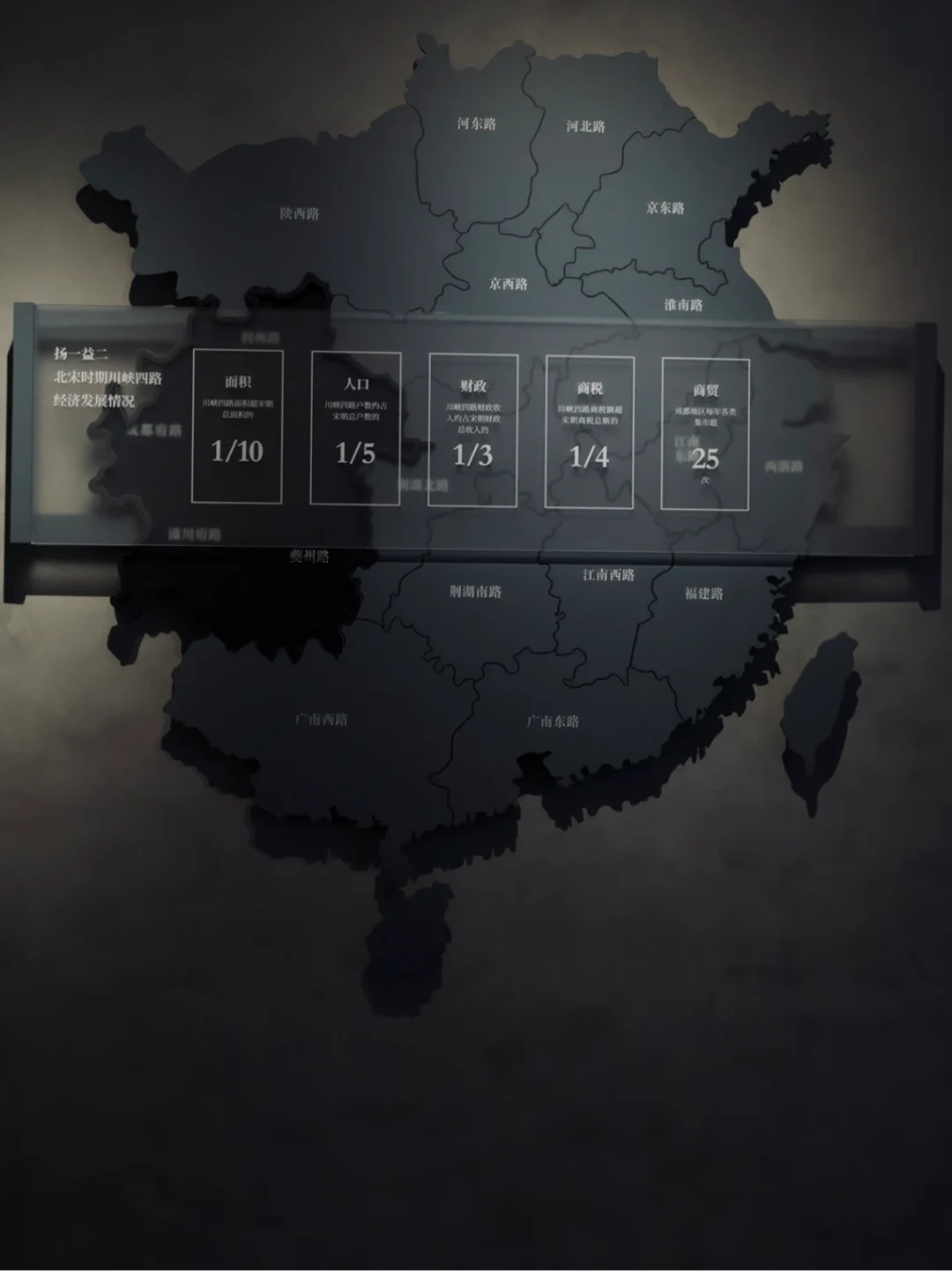 4、北宋川陕四路(今四川重庆大部)占全国的一些数据📊比例,面积1/10,总人口1/5,财政1/3,商税1/4,成都是仅次于扬州的经济中心(扬一益二)。