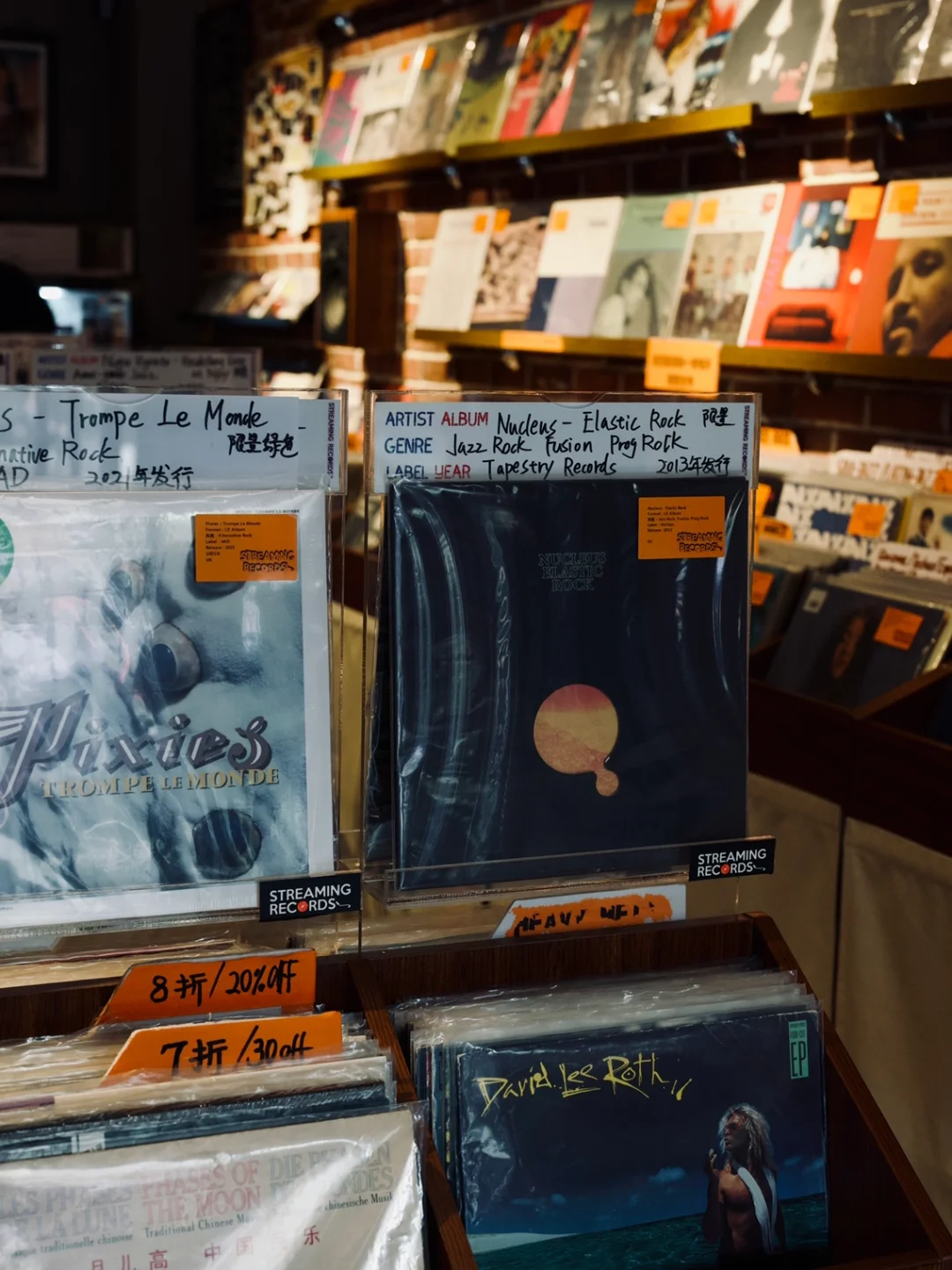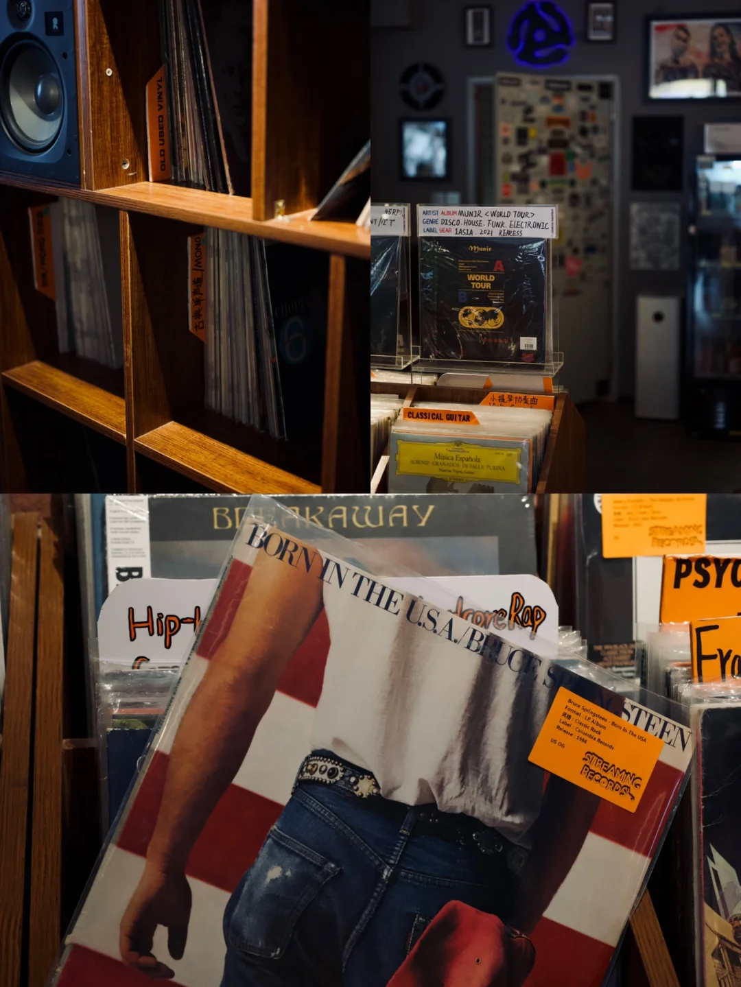 店内有个小姐姐🙋♀️专门给你推荐唱片的,后面聊了几句说他们这里没有什么推荐的唱片,因为他们经常上新,新上的唱片都是他们精挑细选的,所以每一张的值得推荐,小姐姐很热情,问了一句有没有U2的唱片(第一次来没有)想试听一下,她说有,帮我找了好一会,找到了,是U2第一张唱片《BOY》,充满朝气蓬勃的后朋克啊,然后试听了一遍,店内可以试听唱片(开封的才可以)🎧人少大家可以听完一张没问题(半个小时左右)。那天去的时候有DJ小哥在打碟,店里可以拍照,注意保护唱片就行,店里养了只猫🐈,店员小姐姐还自己做了一个逗猫棒,陪它玩。店里竟然还有Bruce Springsteen的《Born in the U.S.A.》,这张全球热卖3000万的经典美式蓝领摇滚,让Bruce成为80年代一代icon,跃进的Riff和铿锵的鼓点,前年循环了很久。🥁