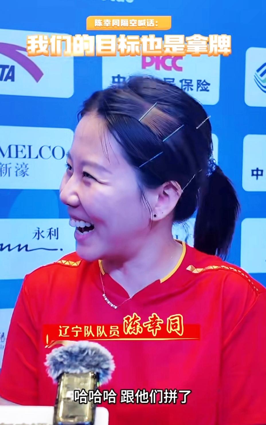 陈幸同隔空喊话黄镇廷, “我们的目标也是拿牌,跟你们拼了”, 同同是越来越可爱了。 全运会混双1/4决赛, 徐海东/陈幸同将对战港队黄镇廷/杜凯琹。 黄镇廷在之前的采访中幽默地表示, 他们谁都不想对战就能拿冠军。 结果陈幸同/徐海东晋级8上之后, 陈幸同在采访的时候表示, 他们的目标也是拿牌。 黄镇廷之前采访不是说也拿牌吗? 那我们就跟他们拼了。 同同真是太可爱了, 这是隔空喊话黄镇廷呀。 期待他们两对混双组合, 1/4决赛的精彩表现, 看谁能实现拿牌的愿望。 (图片源自于网络)
