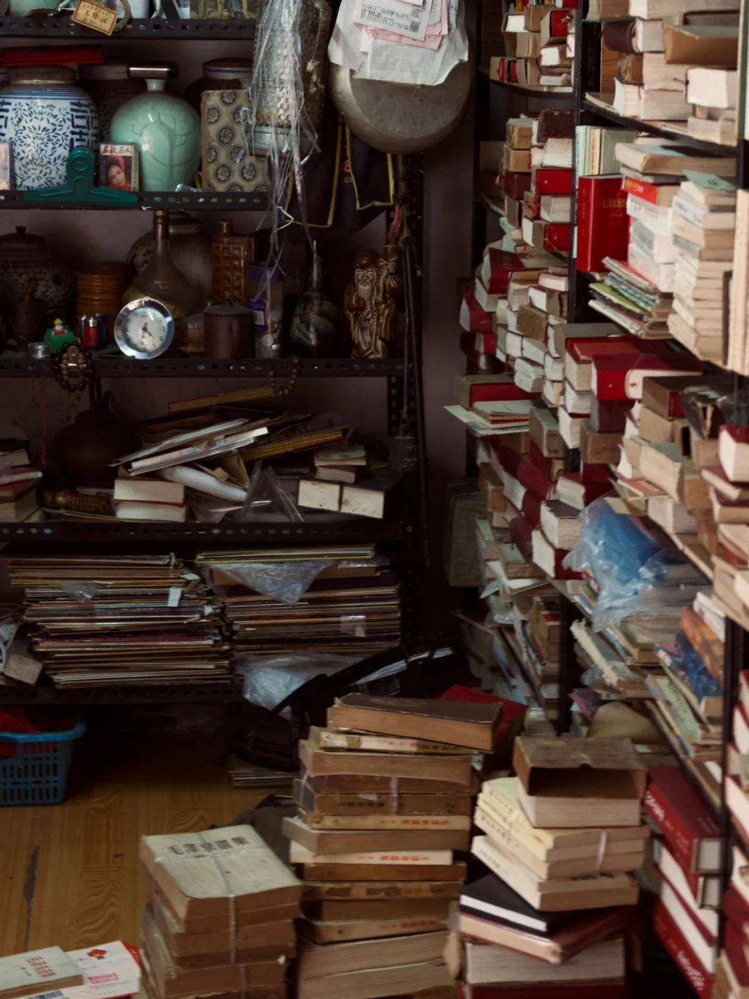 这家旧书店在花牌坊林巷子内,进门的老物件🏺吸引了我的注意,各种瓶瓶罐罐、串串珠珠、🕰钟表算盘、人物雕塑堆满了整个货架。老板随和,留够空间,任我边拍边淘。📷