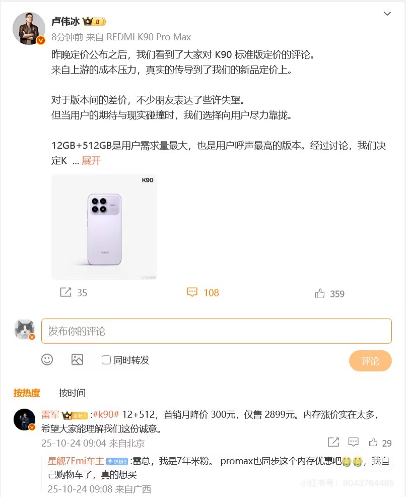 之前网友喷红米k90内存贵,但内存是真的贵啊!