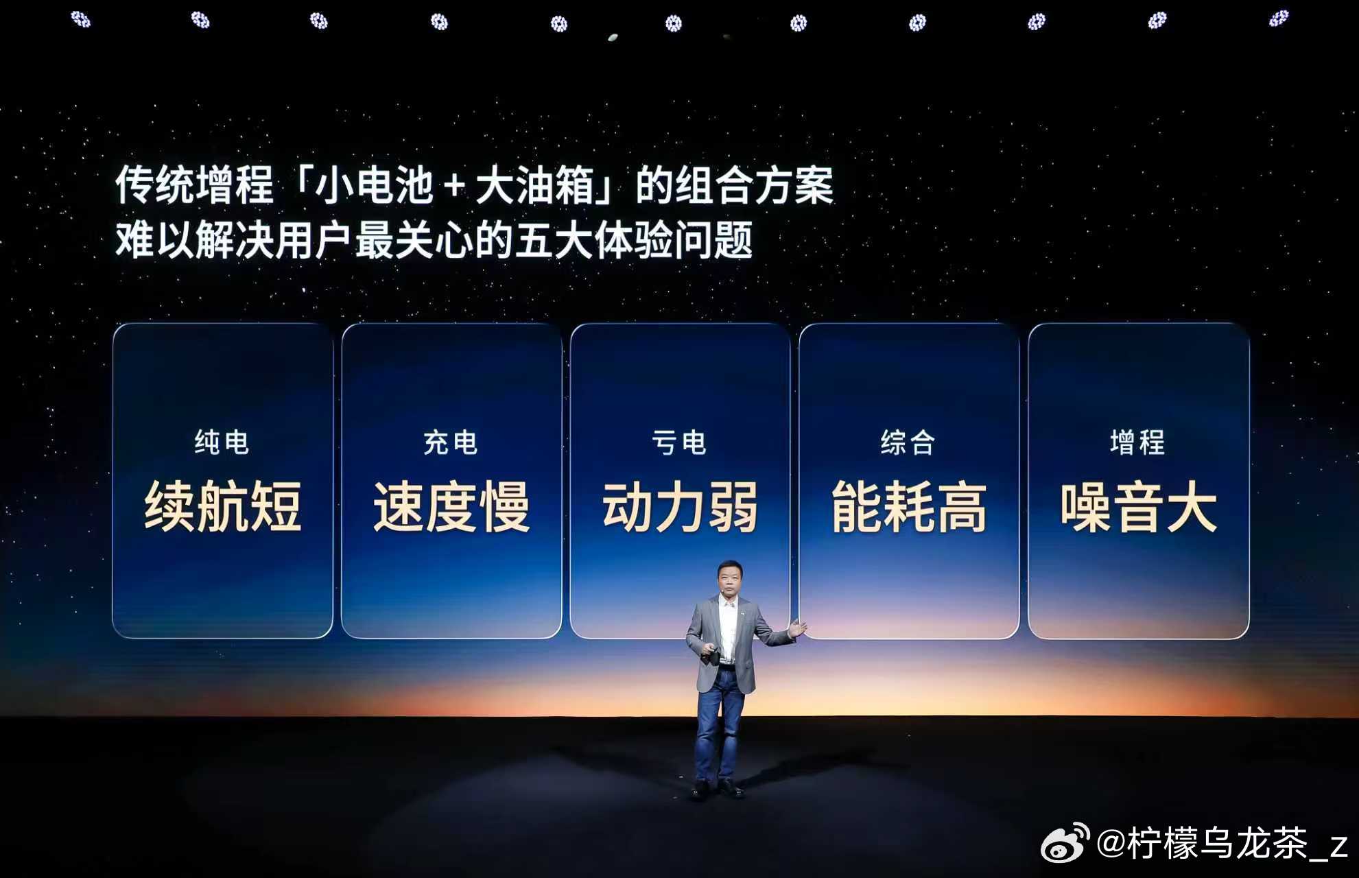 过去,行业内传统的增程方案,普遍采用「小电池+大油箱」的组合方案,这种组合无法解决“纯电续航短、充电速度慢、亏电动力弱、综合能耗高以及增程噪音大”等问题。