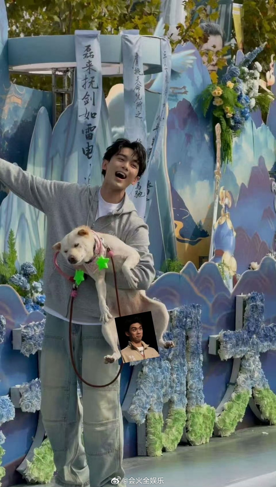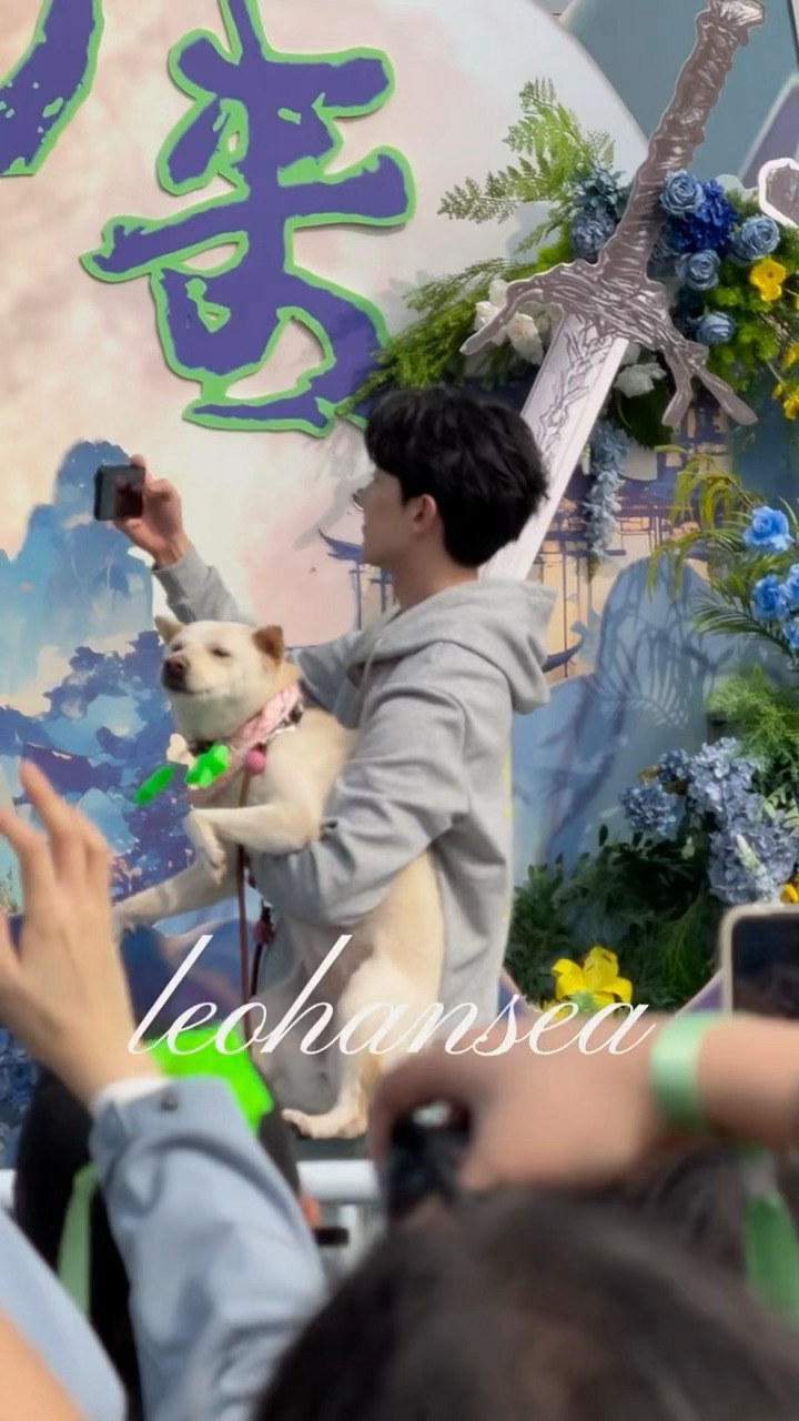 吴磊抱狗狗跟粉丝合拍小北演我上班哈哈哈哈吴磊开机现场被粉丝喊害羞了