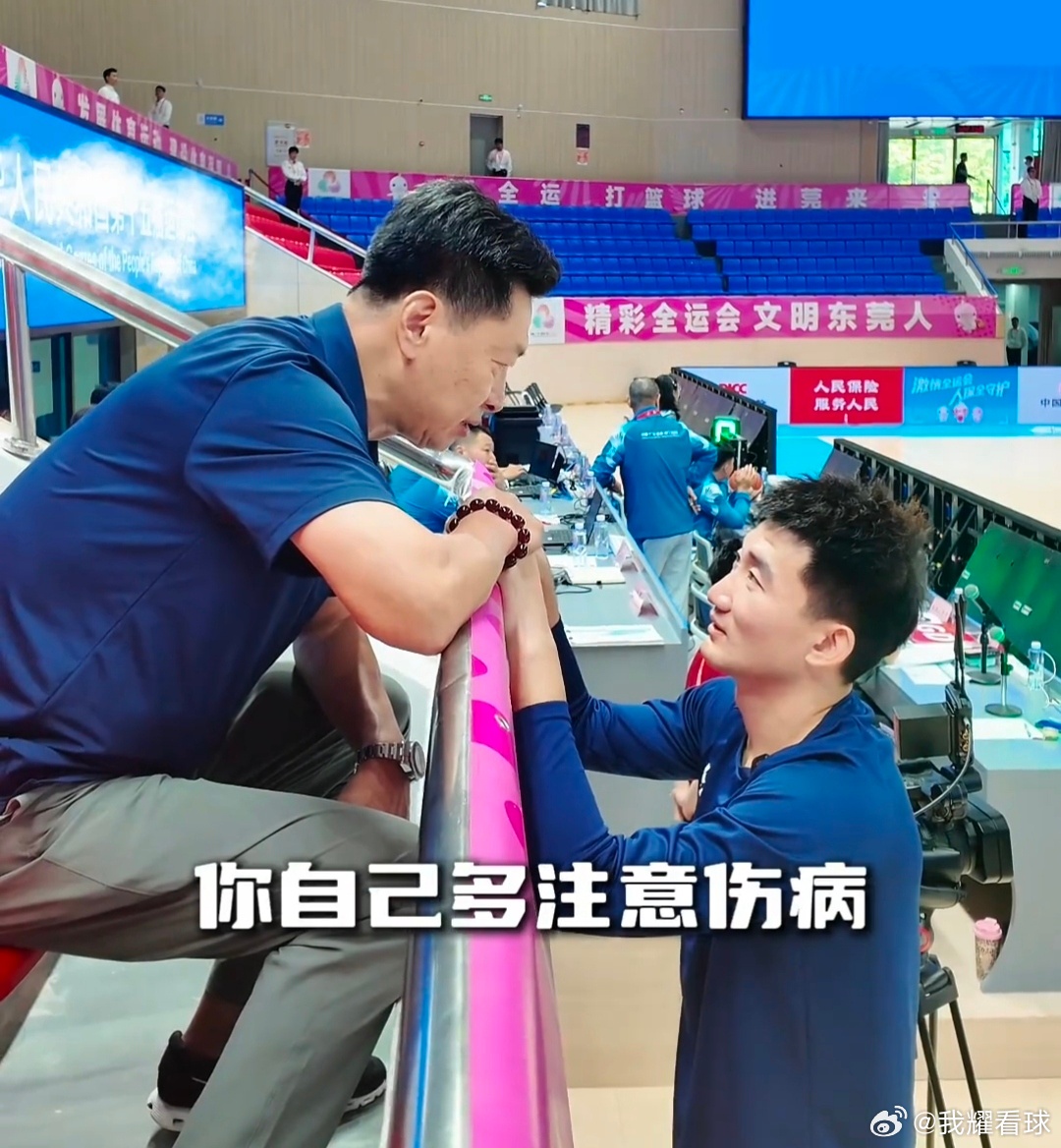 球场上桀骜不驯的孙铭徽,遇见李春江指导也变得如此乖巧[嘻嘻],俩人还聊到了本届全运会四川队的目标:进前三名拿奖牌 全民聊全运
