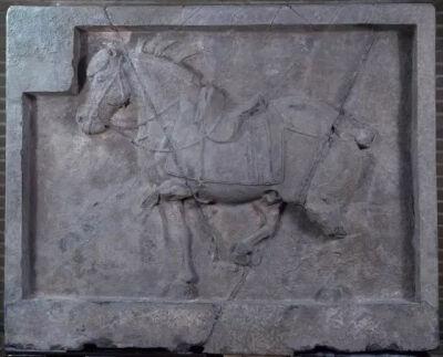 拳毛騧是唐太宗李世民的战马,属于昭陵六骏之一 。 “拳毛騧”可能是从“权于麾国”来的。 权于麾国,“权”就是“琼”,女国崇拜的大鹏鸟。 “於摩”,也写作野嫫,嫫,“野”(於),王也,“嫫”(摩),母也,即是拥有万帐的女王。 也就是说拳毛騧是来自于西域的西王母国。 拳毛騧是一匹黄马黑喙,周身旋毛卷曲的骏马,原名“洛仁騧”,是代州刺史许洛仁在武牢关前进献给李世民的,后人因其毛发特征,称其为“拳毛騧”。 武德四年十二月至次年三月,李世民平定河北刘黑闼时,拳毛騧随其出征,在洺水之战中身中九箭,战死疆场。 拳毛騧石刻原位于昭陵,1914年被盗,后被美国人偷运到美国,现藏于美国宾夕法尼亚大学博物馆。