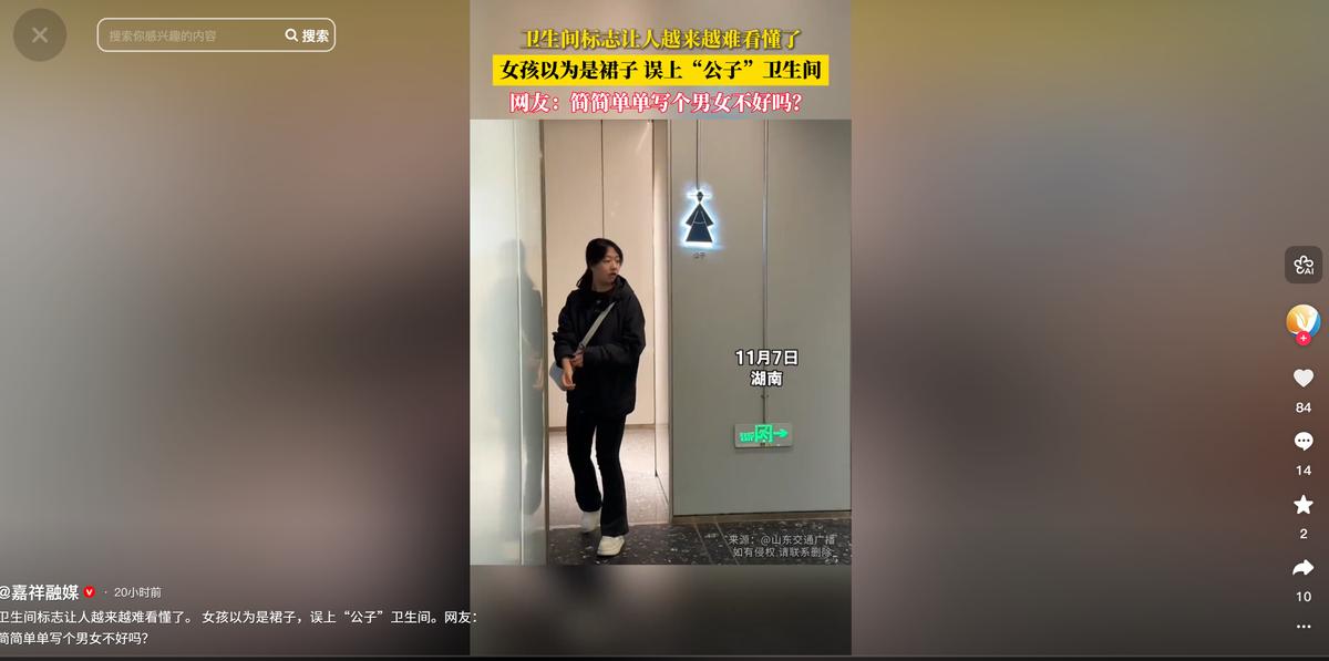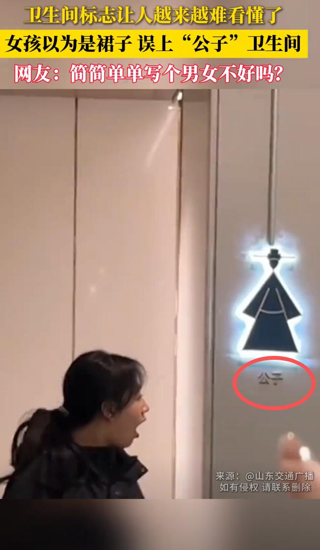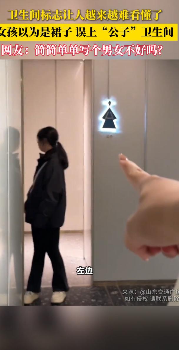 笑不活!湖南一女生在商场上厕所,看到穿裙子的标志,就冲了进去,不料,出来时,朋友笑个不停,女生有点懵!朋友指着厕所标志说:你看你后面,墙上写的啥?女生瞄了一眼,图案确实是个穿长衣的,跟女厕的裙子图案没差啊。 逛商场本来是件挺放松的事儿,可湖南一位女生最近就因为商场里的厕所标志,闹了个特别尴尬的笑话,现在想起来还觉得有点脸红,那天她和朋友一起去商场逛街,逛得正尽兴呢,突然就尿急了,赶紧跟朋友打了声招呼,就急匆匆地往厕所方向跑。 远远看到厕所入口的标志,她也没多想只瞥见是个穿长衣的图案,线条看着柔柔和和的,看着就像女厕常见的裙子样式,当时实在太急了她压根没仔细看,脚下步子没停一头就冲了进去。 等解决完生理需求,慢悠悠地走出来,就看到朋友站在门口,捂着嘴笑得直不起腰,旁边还围了两个路过的路人,也在偷偷地笑。 女生一下子就懵了挠着头一脸困惑,不知道大家为啥笑,朋友好不容易止住笑,指着她身后的厕所标志说:“你自己回头看看,墙上那标志到底写的啥?” 她赶紧转过身去,盯着标志仔细瞅了瞅,图案确实是个穿长衣的人形,轮廓看着跟女厕的裙子标志真没啥大差别啊,难道自己看错了? 再凑近了一看,她才发现图案下方居然还有两个小小的字,“公子”,而且字号特别小,颜色还跟背景有点接近,不仔细看根本注意不到。 这一下女生的脸瞬间就红透了,恨不得找个地缝钻进去,原来自己情急之下,居然把男厕当成女厕了!幸好刚才厕所里没人,不然真的要尴尬到原地社死,现在想想还心有余悸。 其实这种因为厕所标志设计太 “有创意” 而闹笑话的事儿,真不是个例,之前就听朋友说过,她一个近视的同事,去文创园玩的时候,也因为厕所标志犯了难。 文创园里的标志都是古风设计,一边是书生画像,一边是小姐画像,可她同事近视没戴眼镜,远远看着两个画像都模模糊糊的,根本分不清哪个是男哪个是女,犹豫了半天还是走错了,直到跟里面的一位男士迎面对上,才反应过来自己进错了厕所,赶紧红着脸退了出来。 还有在北京的孙女士,也遇到过类似的麻烦,她上次去一家网红餐厅吃饭,想去厕所的时候,看到门口两个三角形的标志,一个锐角朝上,一个朝下,任凭她怎么琢磨,也猜不出来哪个对应男厕哪个对应女厕。 最后实在没办法,她只能靠着闻到其中一边有烟味,才勉强判断出那是男厕,不然真不知道要纠结到什么时候。 本来上厕所是件挺简单的事儿,可现在好多公共场所的厕所标志,真是越来越让人看不懂了,好好的 “穿西服的男士”“穿裙子的女士” 这种一眼就能看明白的经典标志不用,非要搞些花里胡哨的设计。 有的用抽象的几何图形,有的画着各种动物,还有的弄成扑克牌、卡通人物,五花八门的,完全看不出跟性别有啥关系。 后来才知道,这些设计背后,其实都是商家和设计师的 “小心思”,现在好多商家都想让自己的店铺变成 “网红打卡地”,觉得连厕所标志都设计得别致一点,才能显得有个性、有格调,吸引大家来拍照宣传,当成一种营销手段。 而设计师呢,也想借着这个机会展现自己的创意才华,就把简单的标识搞得越来越复杂,完全忘了厕所标志最根本的作用是啥。 说到底厕所标志的首要任务就是清晰指引方向,让大家能快速找到对应的厕所,而不是让大家站在门口猜半天,我国其实早就有推荐的标准图形符号,就是大家都熟悉的男士女士轮廓,全球通用,简单明了,不管是年轻人还是老年人,一看就懂,可问题是这个标准只是 “推荐性” 的,没有强制要求所以好多商家根本不遵守。 更过分的是有些设计连最基本的文字辅助都做得特别敷衍,按照规定,厕所标志旁边必须有 “男”“女” 文字说明,而且字号还不能太小,可好多设计师为了所谓的 “美观”,把文字做得特别小,还藏在角落或者用浅色字体,不仔细找根本看不见,跟没写一样完全起不到辅助说明的作用。 现在越来越多的人都在吐槽这种 “反人类” 的厕所标志,希望商家和设计师们能听听大家的声音,别再让创意盖过实用了,让厕所标志回归它本来的作用,让大家上厕所不用再 “猜谜”,这才是最实在的事儿。 (信息来源:嘉祥融媒)