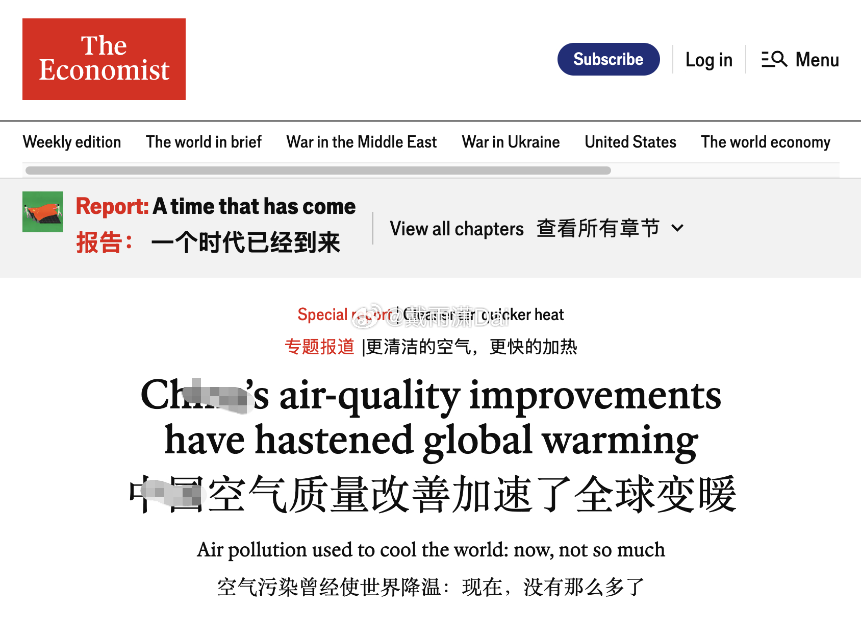 《经济学人》:中国改善空气质量加剧了全球变暖。