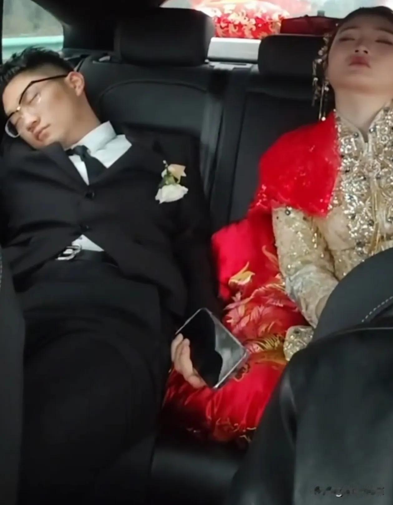 安徽,一对新人结婚,在前往婚礼现场的婚车上,两人都睡着了,新娘靠在座椅上,新郎歪头酣睡,画面温馨。 网友评论: 这就是爱情最美的样子吧😉 婚结的这么累,难道就不能省掉那些不必要的仪式吗?婚是两个人的事,何必演给别人看! 服了![捂脸][捂脸][捂脸][捂脸]厉害!真的累了,结婚真的不容易。 晚上都瞪起眼来了[呲牙][呲牙][呲牙][呲牙][呲牙][呲牙] 终于,美梦成真了,绷紧的神经,可以放松一下了。 来源:如意芳菲