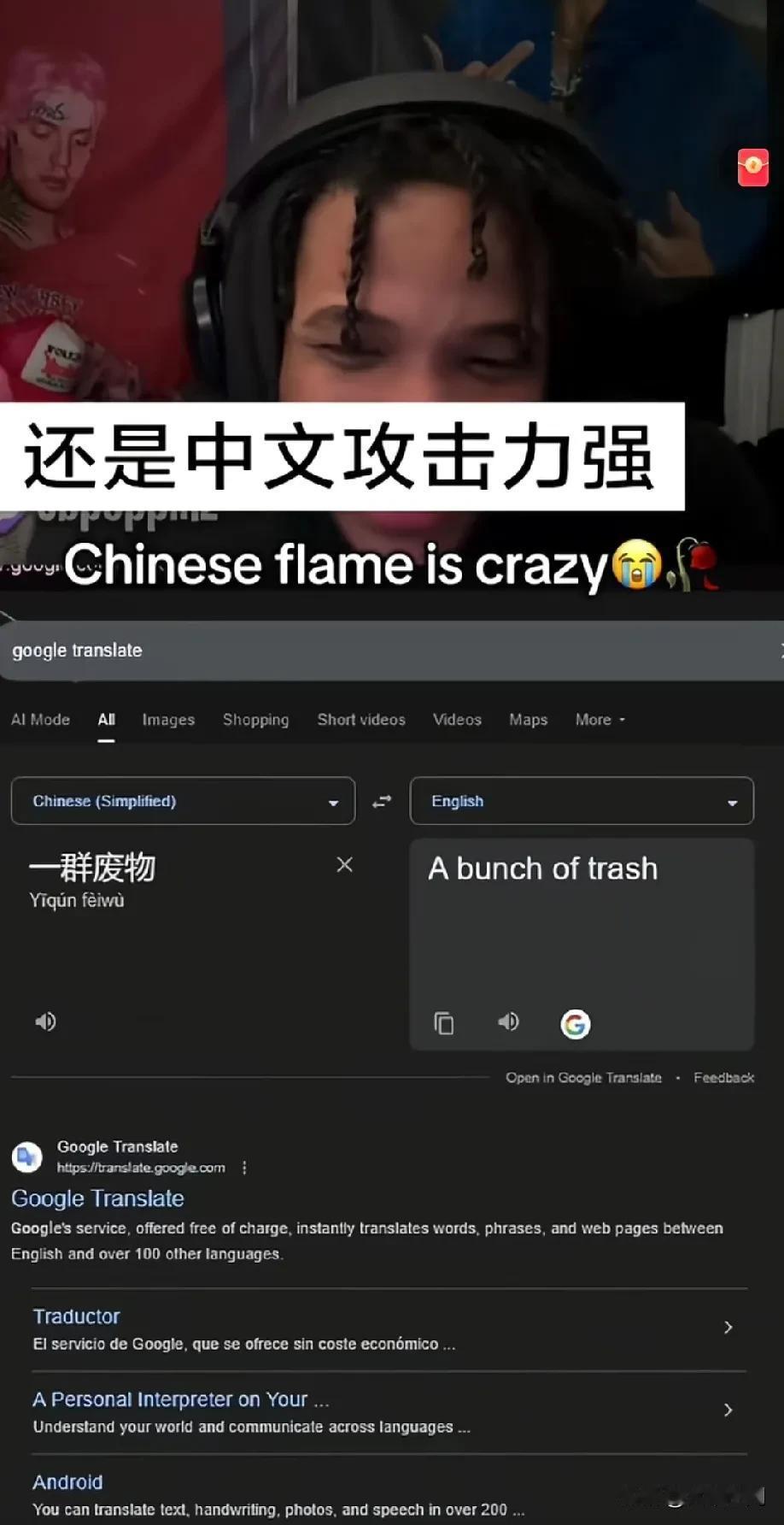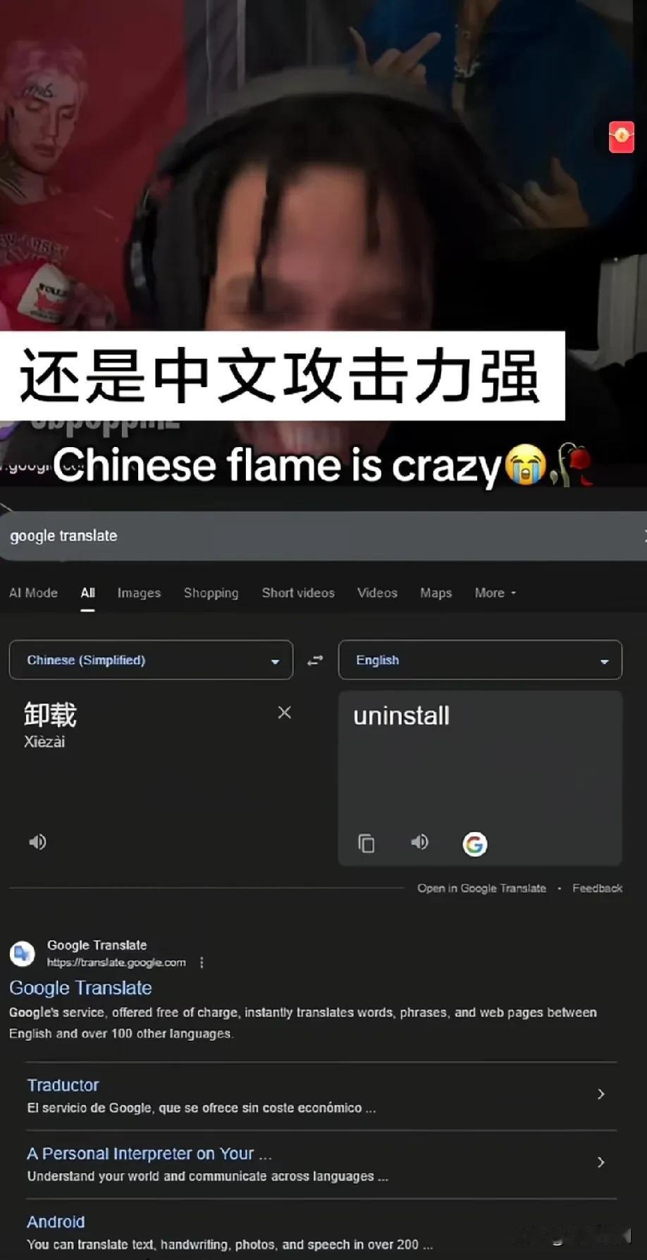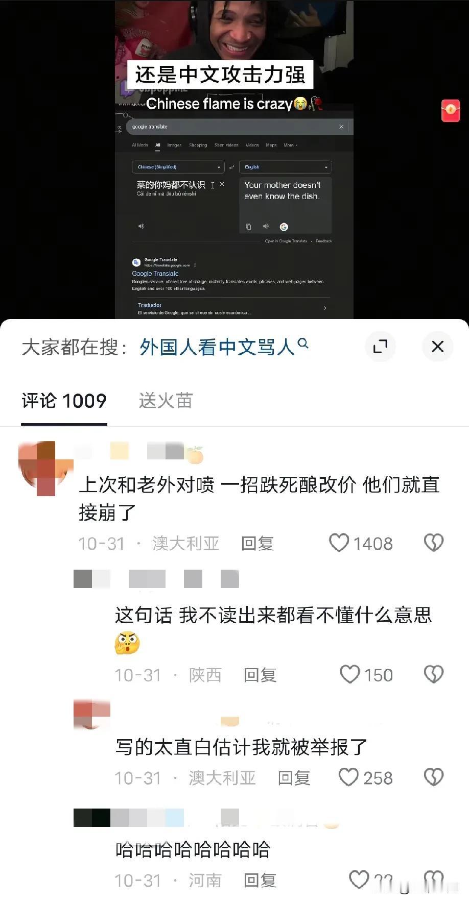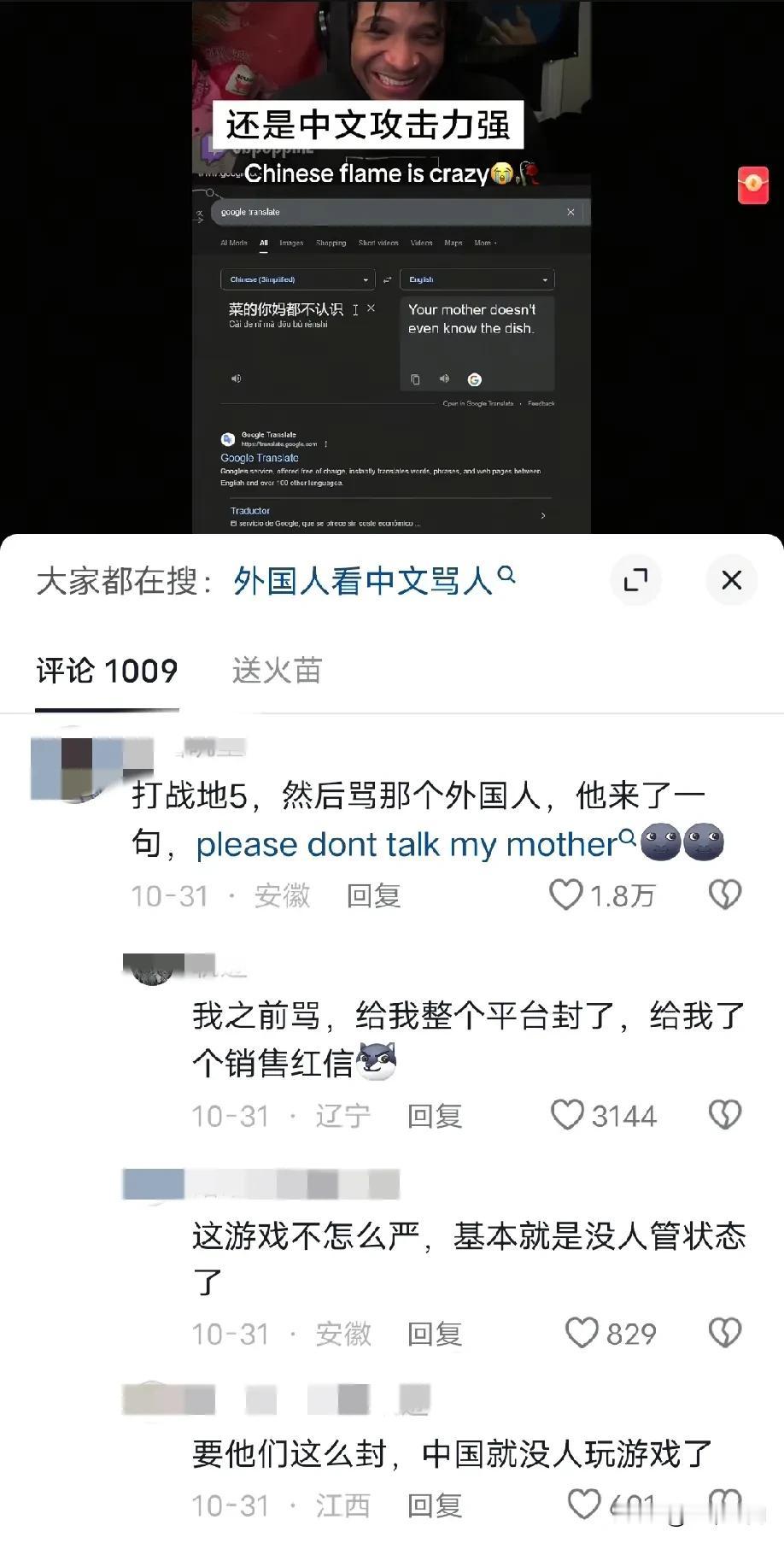 还是中文的攻击力强,有个老外跟中国玩家组队玩游戏,然后中国玩家用中文留言讽刺对面的老外玩家,这个跟中国玩家组队的老外看不懂,就翻译出来后,直接笑模糊了,全都不带一个脏字,把老外都说自闭,老外说来说去就那几个词,中国玩家可以变着花地来讽刺你,而且攻击力超强,正常老外都受不了的!