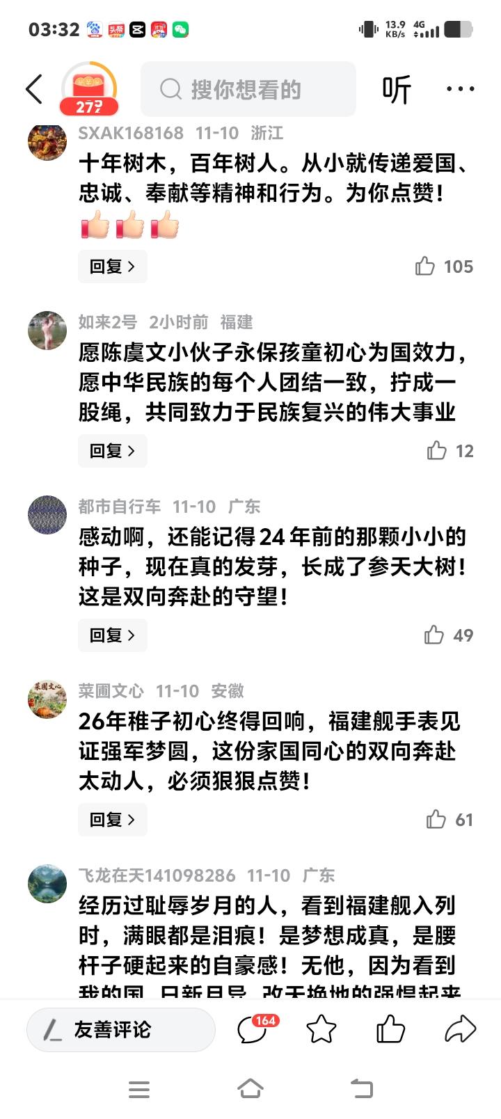 26年前捐140元造航母的广西小伙收到中国船舶邀请!童年赤子心照亮强军路,福建舰手表见证跨越时代的双向奔赴 (来源:长安街知事微信公众号) 一枚福建舰入列纪念手表,一封跨越二十六年的温情邀约,将时光拉回那个国人心潮澎湃的年代。当年那个揣着零花钱跑遍四次邮局的广西钦州男孩陈虞文,如今已长成投身法治建设的青年。而中国船舶集团的一纸邀请,不仅圆了他童年的“航母梦”,更映照出个体与国家同频共振的动人篇章。 幼时的陈虞文,在父亲戎马生涯的熏陶下,早早种下家国情怀的种子。一九九九年,北约轰炸中国驻南联盟大使馆的硝烟刺痛了无数国人,也让年幼的他攥紧了拳头。电视里同胞的悲愤与呐喊,化作他心中最朴素的信念:“若我们有航母,别人岂敢欺辱?”这一念想,驱使着他将积攒的零用钱分批寄往解放军总装备部。 一百四十元,在如今不过是一餐饭的价钱,但在那个年代,却是一个孩子全部的赤诚。父亲的支持、四趟邮局的奔波、褪色的汇款单,拼凑出一幅稚子报国的画卷。更令人动容的是,国家郑重退回捐款并附上贺卡,既守护了童心的纯粹,也埋下了二十六年后惊喜的伏笔。 当年总装备部回信中的“顺祝新春快乐”,如今化作福建舰模型的熠熠辉光。陈虞文的故事之所以刷屏网络,正因为其背后是千万普通人的缩影——我们未必有机会亲赴疆场,但那份“国之所需,吾之所向”的情怀,却深植于每颗跳动的心脏。有网友感叹:“原来国家从未忘记任何一份微光!” 从辽宁舰到福建舰,中国航母编队的每一次破浪前行,都离不开亿万人民的托举。陈虞文的140元,如同汇入江海的涓滴,与其他无数默默无名的支持共同奔涌成强军兴国的洪流。这份“你守护国家,国家铭记你”的双向奔赴,恰是中华民族生生不息的密码。 当陈虞文站在中国船舶集团的展厅里,摩挲着福建舰手表上的精密纹路,他看到的不仅是儿时梦想的具象化,更是一个民族从筚路蓝缕到星辰大海的跋涉。有评论一针见血:爱国从来不是宏大的口号,而是每个平凡人用行动写就的诗行。 如今,陈虞文从军迷成长为建设法治社会的一员,而中国的航母事业也已迈入三舰时代。这段跨越四分之一世纪的佳话提醒我们:所有看似微小的坚持,终将在时代的画卷中留下刻痕。正如网友所言:“童真与国运共振,这才是最高级的浪漫。” 当个体命运与国家发展紧紧交织,每一份真诚都不会被辜负。陈虞文的故事仍在续写——而属于每个中国人的强军梦、强国梦,也正在更多角落生根发芽。 家国情怀 强军之路
