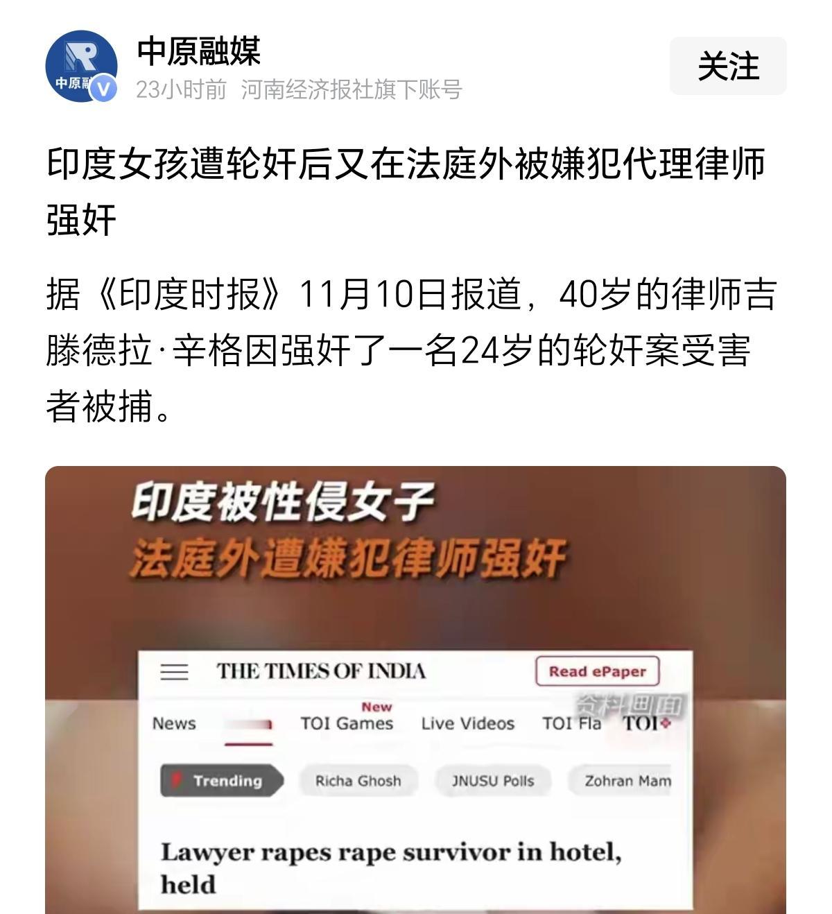 这是跟印度当地的生活习惯,气候条件,风土民情等有关吗?代理律师都能够做出这样的事情,确实很难理解。人是社会群居生物,也是高度智慧的生物。按理说,这种离谱的事件,不至于连续发生两次。 新闻来源:中原融媒