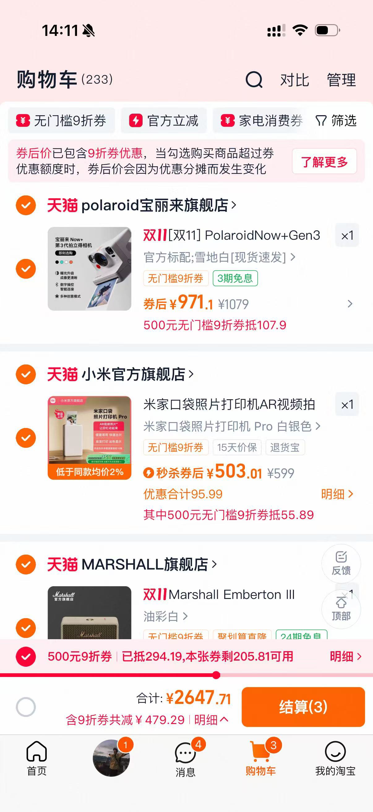 刚才整理购物车,发现几样数码老伙计还在里头躺着。上次去闺蜜家聚餐被种草了音箱,用手机连上拿个音箱放歌,整个房间的氛围一下就对了。当时就想,必须给自己也买一个,以后那些需要音乐治愈的夜晚,它都得在。还有口袋照片打印机,已经准备第二次回购了。去年给朋友送了一个当生日礼物,她现在乐此不疲地把我们旅行的点滴都打印出来塞满了她的手账本、装进她的相册中。今年准备给自己也置办了一台,周末和朋友们窝在家里,咖啡喝到微醺时拍的搞怪照片,几分钟就能人手一张。这些实实在在握在手里的记忆,比云盘里几个G的模糊数据,要温暖得多。眼看天猫双11就进入最后冲刺阶段了,算了算价格,心一横还是准备拿下。 这波不冲真说不过去——我的88VIP券,加上数码品类本身的优惠,七七八八叠下来,差不多是平时心心念念又舍不得下手的那个数了。听说还有国家补贴,感觉像捡了个大便宜。一年就这一次,错过又要等365天。这些能点亮生活的小物件,值得在最后的时刻,被带回家。