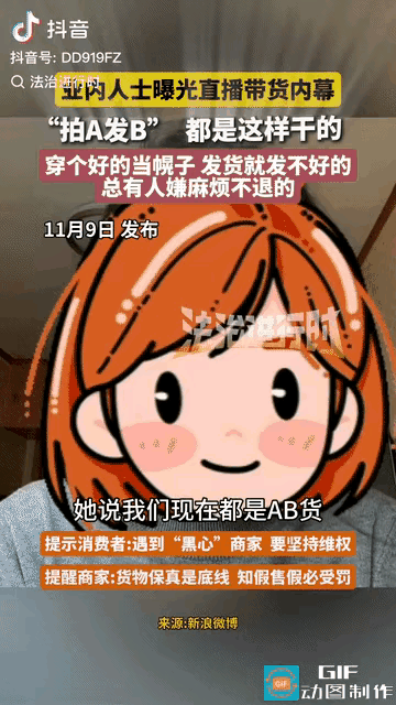实锤了!“你永远买不到主播手里那一款”原来不是一句玩笑话。消费者和主播赌“人品”,主播和消费者赌“人性” 网上有业内人士曝光:直播间里声嘶力竭的主播手上拿着质感和版型都无可挑剔的样品,但消费者收到的却是完全不同的商品。 也就是所谓的拍A发B,用优质样板A在直播间进行展示和销售,但实际发出的却是仿品B。 消费者被主播“人品”感动到下单的时候,主播是在赌你嫌麻烦懒得退货的“人性” 这正是直播带货,尤其是女装类目退货率居高不下的根源之一。 现实是黑幕又何止“AB货”这一种。数据造假,表演营销,刷单,打光过度美化商品等都偶有发生。 诚信才是行业长久发展的基石。消费者也应该积极主动的理性监督。只有消费者,从业者以及监管三方的不断强化,才能让网络购物的环境更加健康。