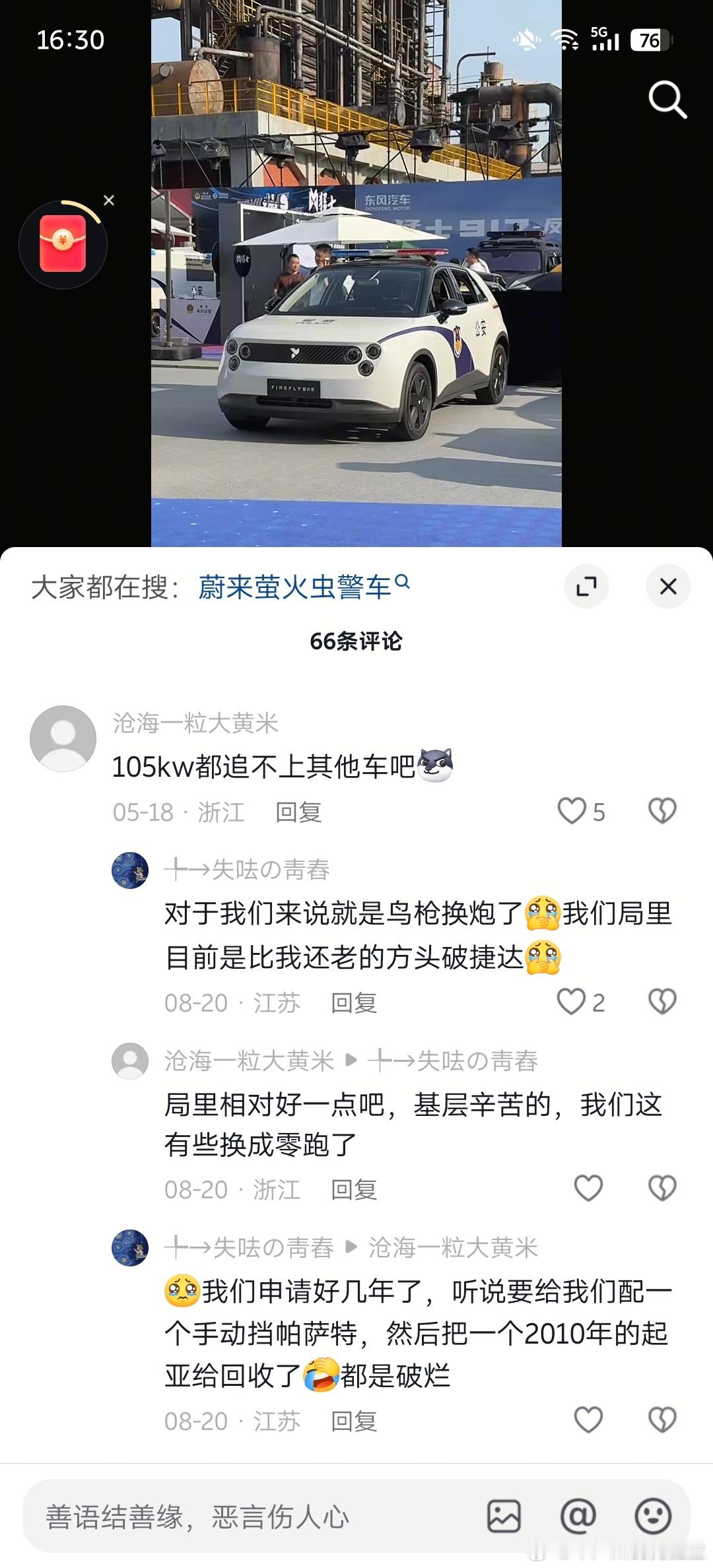这段对话给我乐翻了群众:这东西追不上坏人吧?(披着皮肤的)民警:那我们所里可是过上好日子啦!!!o(^▽^)o