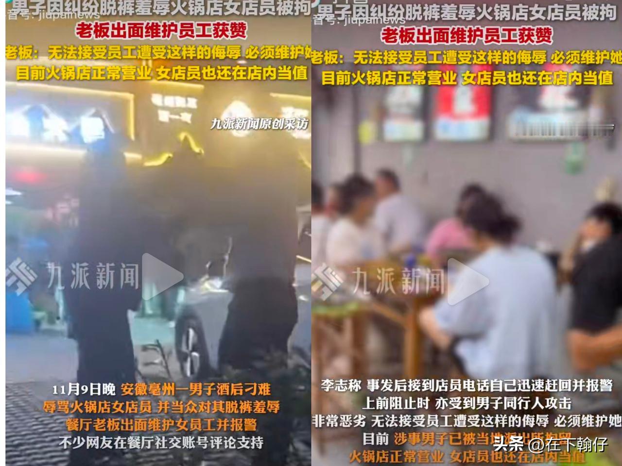 2025年11月9日深夜22:50,安徽亳州某火锅店四名顾客结账时突然发难,其中一名男子不仅用污言秽语辱骂女店员,更两次当众脱裤进行人格侮辱。监控录像记录了整个恶行过程,其同行人员竟对上前制止的老板动手,涉事男子妻子竟辩解:“他喝酒在家也这样骂我”。 已下班回家的老板李志(化名)接到电话后火速赶回现场,第一时间报警并坚定站在员工身前。面对挑衅,他掷地有声:“宁可关店也要维护员工,绝不接受这种侮辱!”警方迅速处置,涉事男子因涉嫌公共场所猥亵及侮辱他人被行政拘留。 事件曝光后,网友集体涌入该火锅店社交平台留言,老板获赞“业界良心”, 网友涌入火锅店社交账号留言支持,称赞其“守护员工尊严”的担当,称“这才是打工人的安全感”,店铺评论区已成“暖心打卡地”,消费者纷纷表示要用实际行动支持正义商家。 “顾客即上帝”≠无限纵容,服务行业的尊严底线不容践踏,酒精从来不是恶劣品行的遮羞布,借酒装疯暴露真实素质。当我们为“硬气老板”点赞时,其实是在呼唤每个劳动者都应有的尊严守护。
