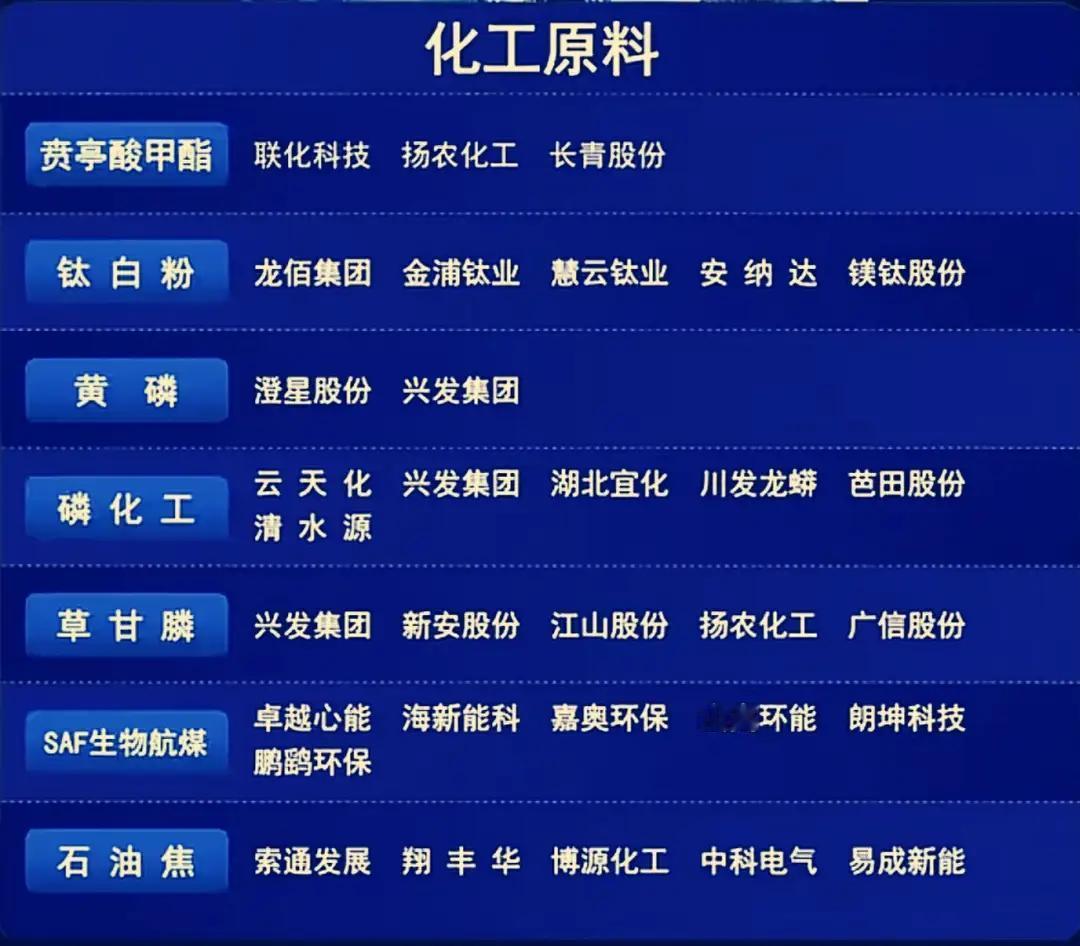 当前市场关注的涨价热点、产业趋势及行业龙头业绩表现可总结如下: 一、近期持续涨价的重点领域及关联企业 1. 锂电池材料(核心涨价板块) - 材料类别与代表企业:六氟磷酸锂(多氟多、天赐材料等)、电解液溶剂(石大胜华、海科新源)、电解液(华盛锂电、新宙邦)、磷酸铁锂(德方纳米、湖南裕能)、隔膜(恩捷股份、星源材质)、钴(翔丰华、索通发展)。 - 驱动逻辑:新能源产业链需求旺盛,上游材料供需偏紧推动价格上行。 2. 化工原料(多品种涨价) - 重点原料与企业:贲亭酸甲酯(联化科技、扬农化工)、钛白粉(龙佰集团、安纳达)、黄磷(澄星股份、兴发集团)、磷化工(云天化、兴发集团)、草甘膦(兴发集团、新安股份)、SAF生物航煤(卓越新能等)、石油焦(索通发展、翔丰华)。 - 关联方向:农业需求、精细化工及新能源衍生品(如生物航煤)推动部分化工品价格波动。 3. 有色金属与其他涨价类型 - 有色金属:铬(振华股份)、铪(三祥新材)、钨(中钨高新)、铝(中国铝业)等; - 其他领域:存储芯片(江波龙、兆易创新)、高速公路(山西高速、山东高速)——后者或因出行复苏或政策预期引发关注。 二、新兴产业链动态:钙钛矿电池加速产业化 - 技术突破:晶硅-钙钛矿叠层电池实验光电转换效率已达34.6%(隆基绿能),多家头部光伏企业(如通威、晶科、晶澳、天合光能等)已布局研发或试验线。 - 代表企业进展:隆基绿能(效率34.6%,试验线完成)、通威股份(实验室效率34.17%,MW级试验线搭建中)、晶科能源(研发效率33.24%,大面积研发线已建)等,总市值从数百亿到超千亿不等,反映资本对技术商业化前景的认可。 三、年底行业龙头业绩分化显著(A股重点企业) 图片汇总了各细分领域龙头的三季度净利润增长率及行业地位,核心结论包括: 1. 高增长领域: - 养殖农产品:新希望(+395.9%,饲料销量第一)、金龙鱼(+92.1%)、牧原股份(+41.0%); - 半导体:寒武纪(+321.5%,AI芯片)、闻泰科技(+265.1%,手机ODM)、兆易创新(+30.2%,存储芯片); - 光伏/新能源:阳光电源(+56.3%,光伏逆变器)、隆基绿能(+47.5%,单晶光伏)、宁德时代(+36.2%,动力电池); - 化工:巨化股份(+160.2%,氟化工)、新和成(+33.4%,维生素); - 金融/医药:同花顺(+85.3%,互联网金融)、药明康德(+84.8%,CXO)、中国人寿(+60.5%,寿险)。 2. 下滑或亏损领域: - 消费/零售:永辉超市(亏损811.6%,商业零售)、中国电影(-69.2%,影视)、中航成飞(-35.2%,战斗机研制)、温氏股份(-18.3%,肉鸡养殖); - 传统周期:万华化学(-17.5%,MDI)、龙佰集团(-34.7%,钛白粉)、中远海控(-29.0%,运力)、长电科技(-11.4%,芯片封测)。 3. 细分龙头地位凸显:如牧原股份(生猪养殖龙头)、北方稀土(全球最大稀土集团)、中国船舶(全球最大造船集团)、海尔智家(冰箱/洗衣机龙头)等,业绩表现与其行业话语权强相关。 综合结论 当前市场主线聚焦新能源(锂电池/光伏/钙钛矿)、化工(精细化工及大宗原料)、有色金属等涨价驱动板块,同时半导体、养殖农产品、金融等领域部分龙头因需求复苏或技术优势实现高增长;而传统消费、部分周期行业则面临业绩压力。投资关注点可围绕“技术突破+需求刚性+价格弹性”三大逻辑展开,尤其是新能源产业链上游材料、高景气度新兴技术(如钙钛矿)及业绩超预期的行业龙头。