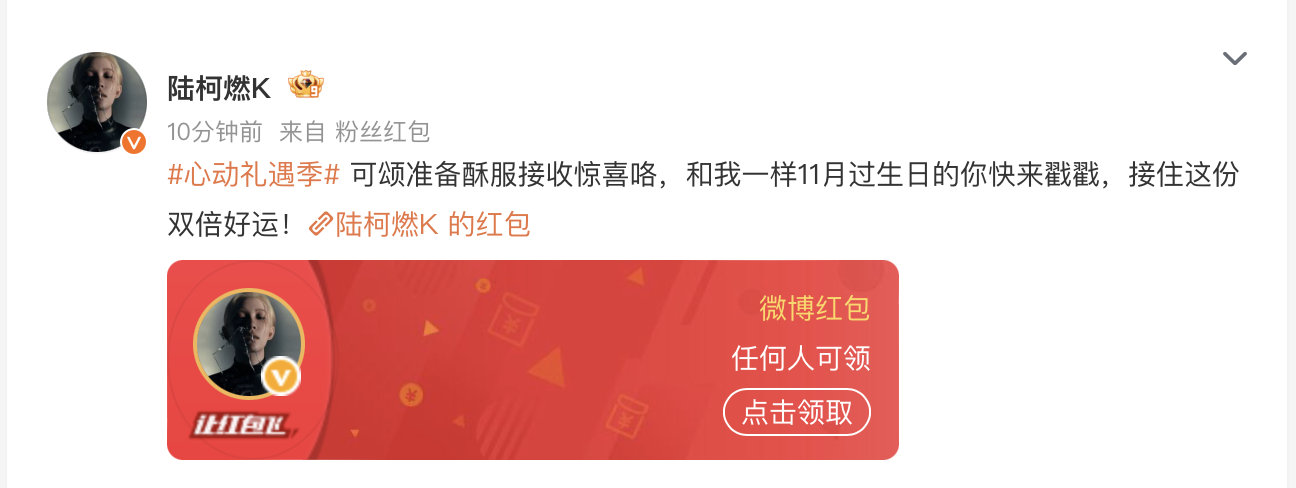 惊喜空降!THE9谢可寅、赵小棠、孔雪儿、陆柯燃集体发红包,双十一红包雨火热派送
