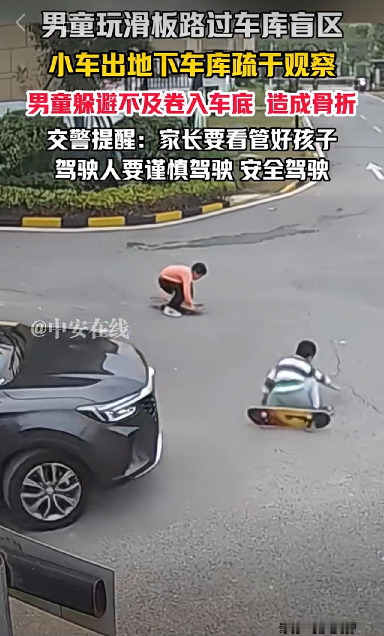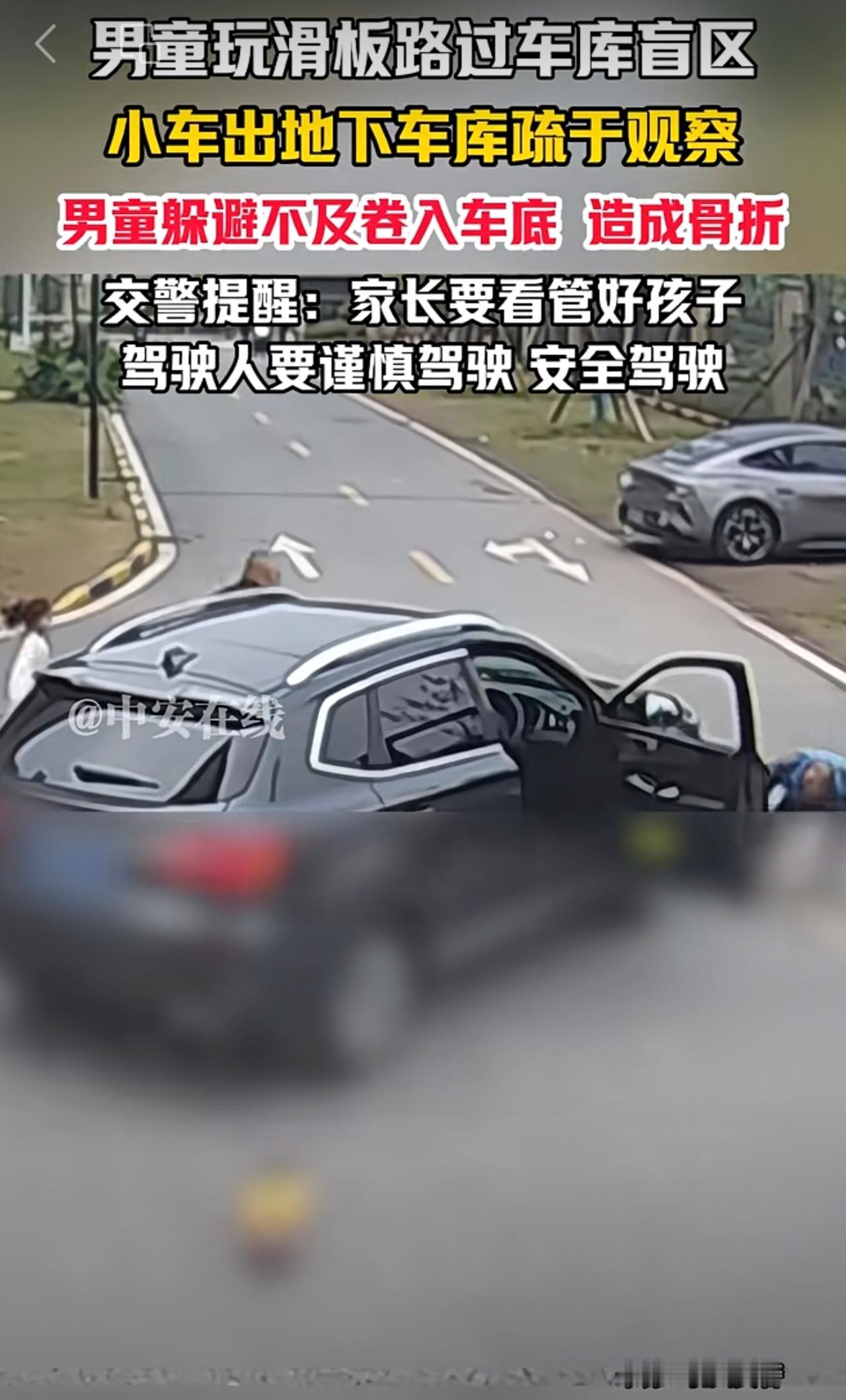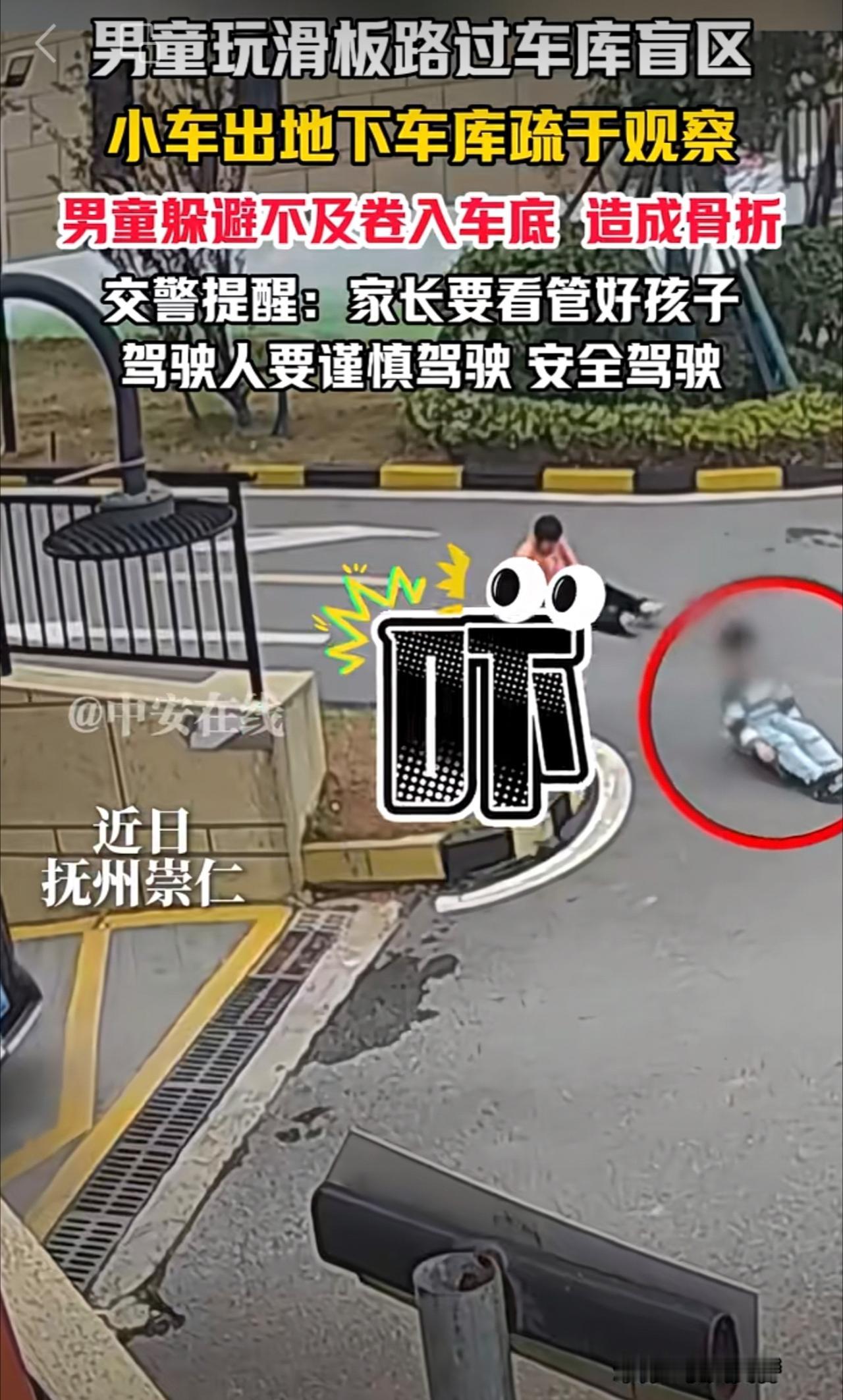 近日抚州崇仁,男童玩滑板路过车库盲区,小车出地下车库疏于观察,男童躲避不及卷入车底 造成骨折,交警提醒:家长要看管好孩子,驾驶人要谨慎驾驶 安全驾驶。(编辑:小yu)