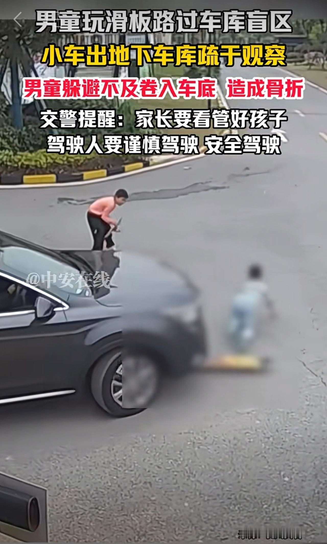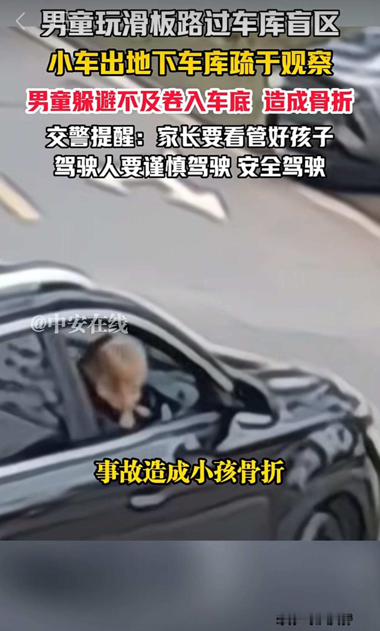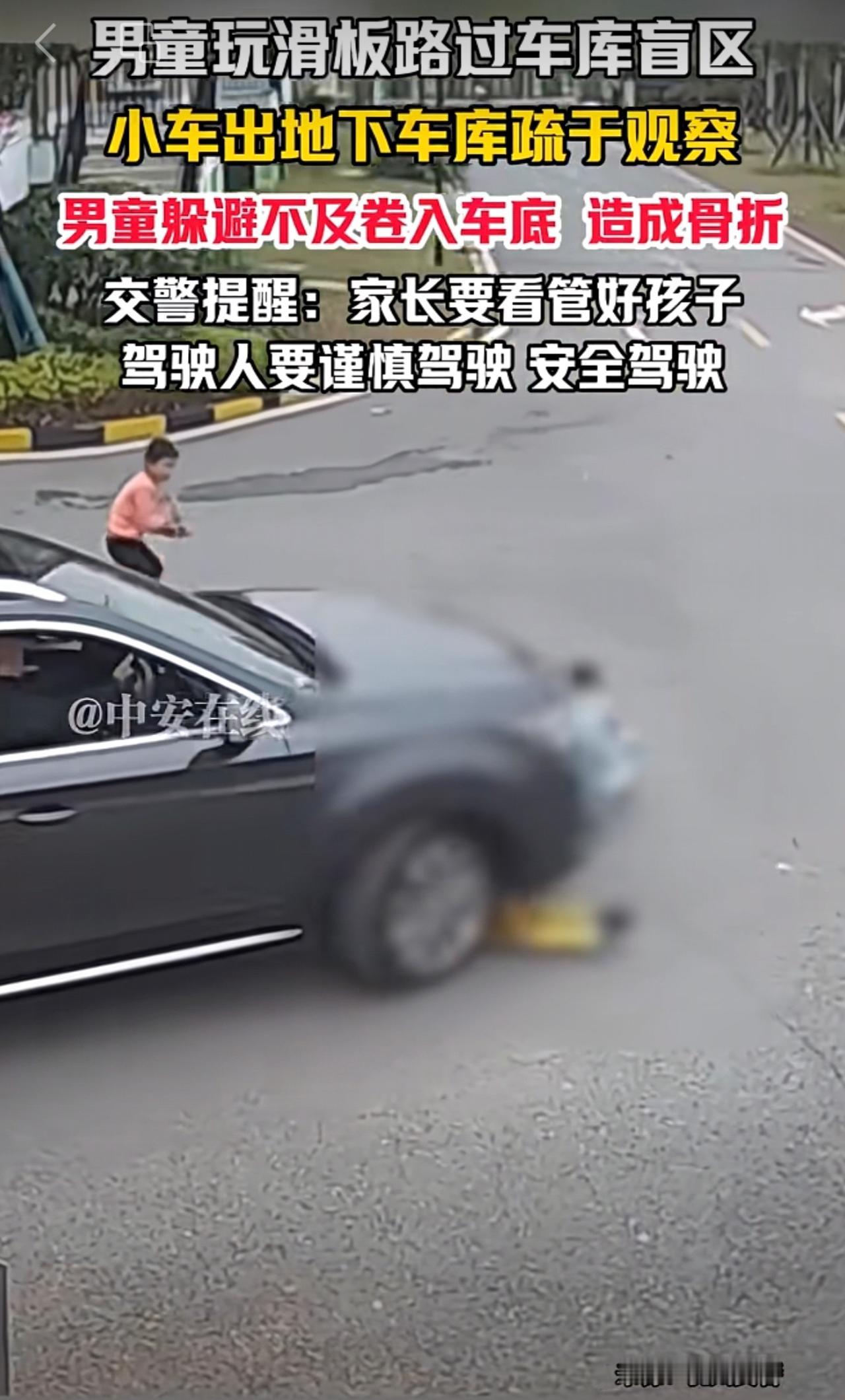近日抚州崇仁,男童玩滑板路过车库盲区,小车出地下车库疏于观察,男童躲避不及卷入车底 造成骨折,交警提醒:家长要看管好孩子,驾驶人要谨慎驾驶 安全驾驶。(编辑:小yu)
