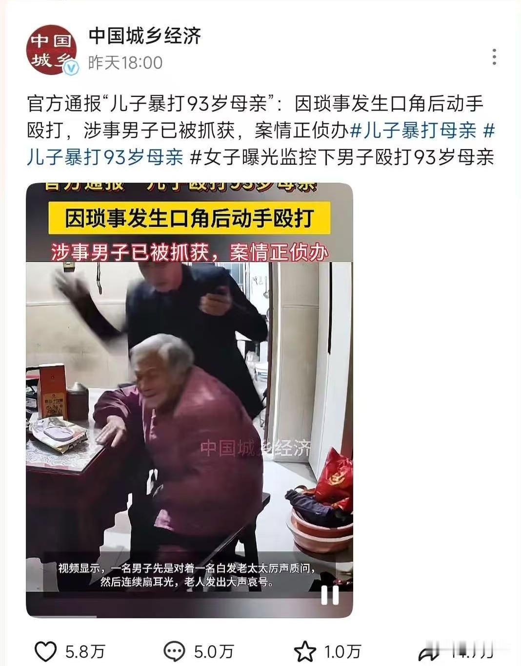 太可怕了!昨天晚上刷到江苏南通,儿子扇自己93岁老母亲耳光的新闻。当时我看到这则