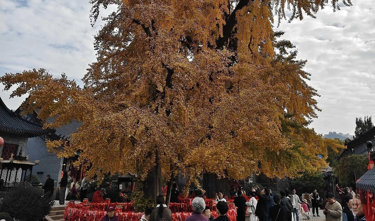 冬日生活打卡季青岛市城阳区夏庄街道源头村法海寺里的千年银杏树叶子黄了,现在是最佳