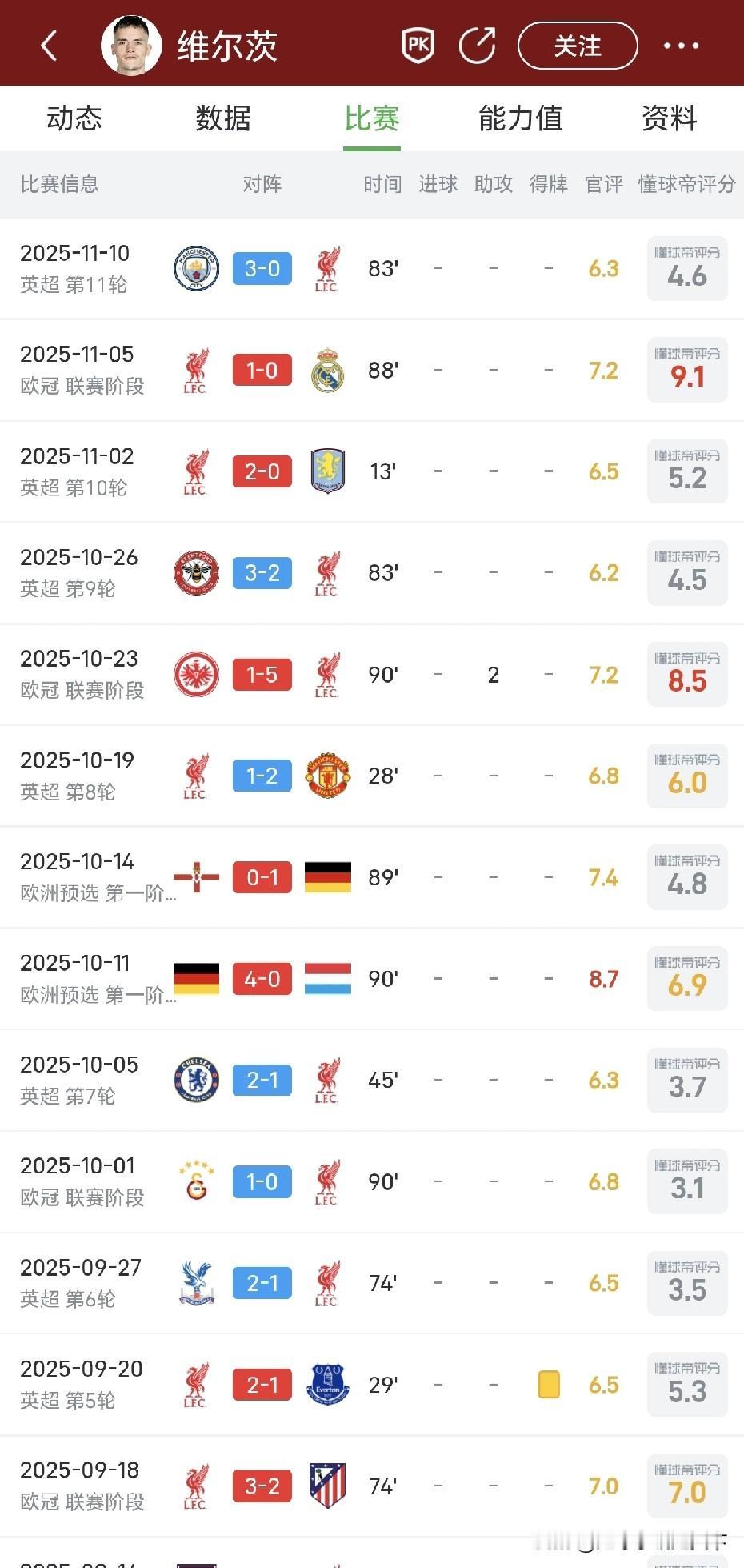 利物浦买维尔茨已经把“谢谢”两个字刮出来了吧?药厂都快乐疯了。 只能说英超持球踢中场太难,强如丁丁基本也是快速出球不然肯定对方上身体,还有像大卫席尔瓦那种脚下频率快,控球细腻,转身也快的技术型中场也不怕英超绞肉机。 其实维尔茨在红军表现不好只能怪萨拉赫这赛季太拉跨,萨拉赫不下,新人没有任何可能发挥出来,现在表现大概可以在7000万左右水平,水了6000万吧。 利物浦今年真成足坛最大的笑话了,从大结局四亿齐飞变成大连败四亿齐废……