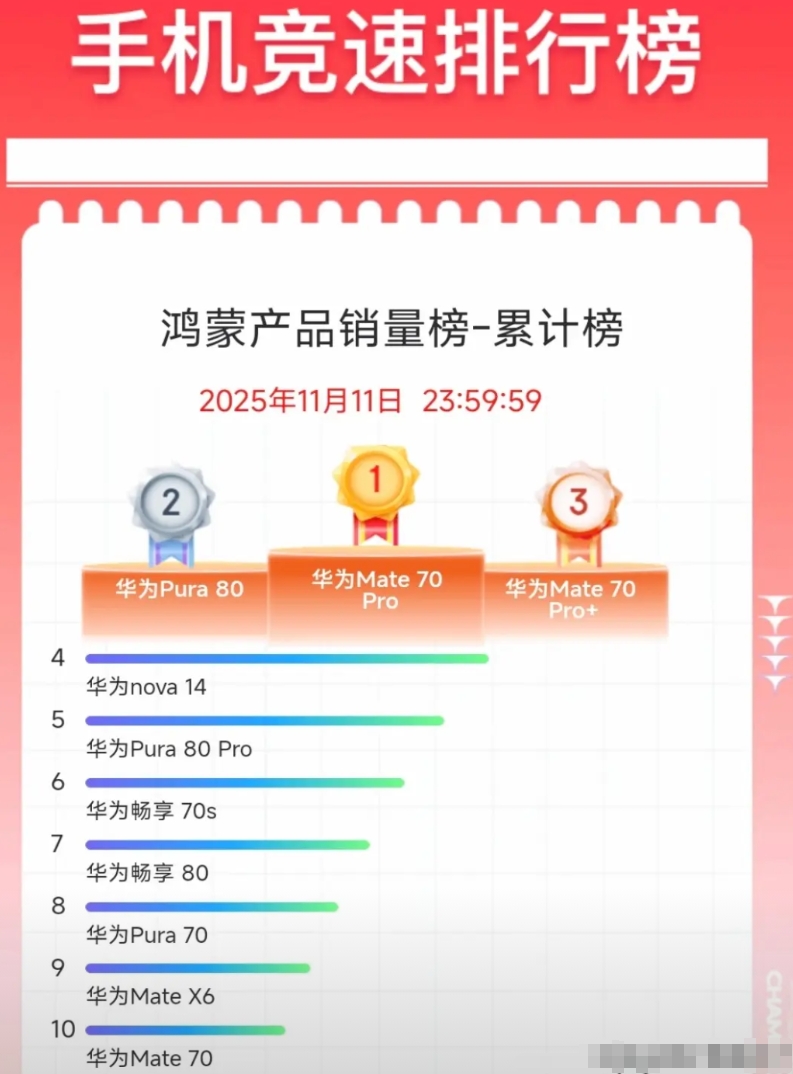华为排名第六其实这个成绩还不错,毕竟是老款机型了,华为Mate80也还没发布!