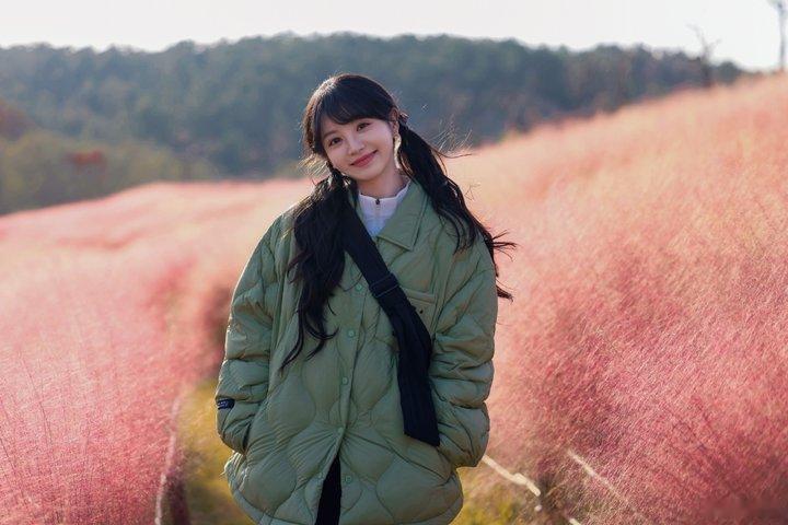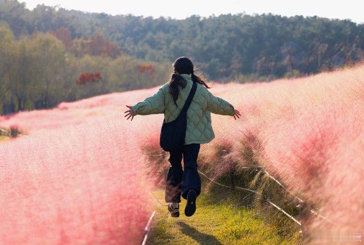 田曦薇和粉色花海绝配~话说小田你的鞋带掉啦~哈哈