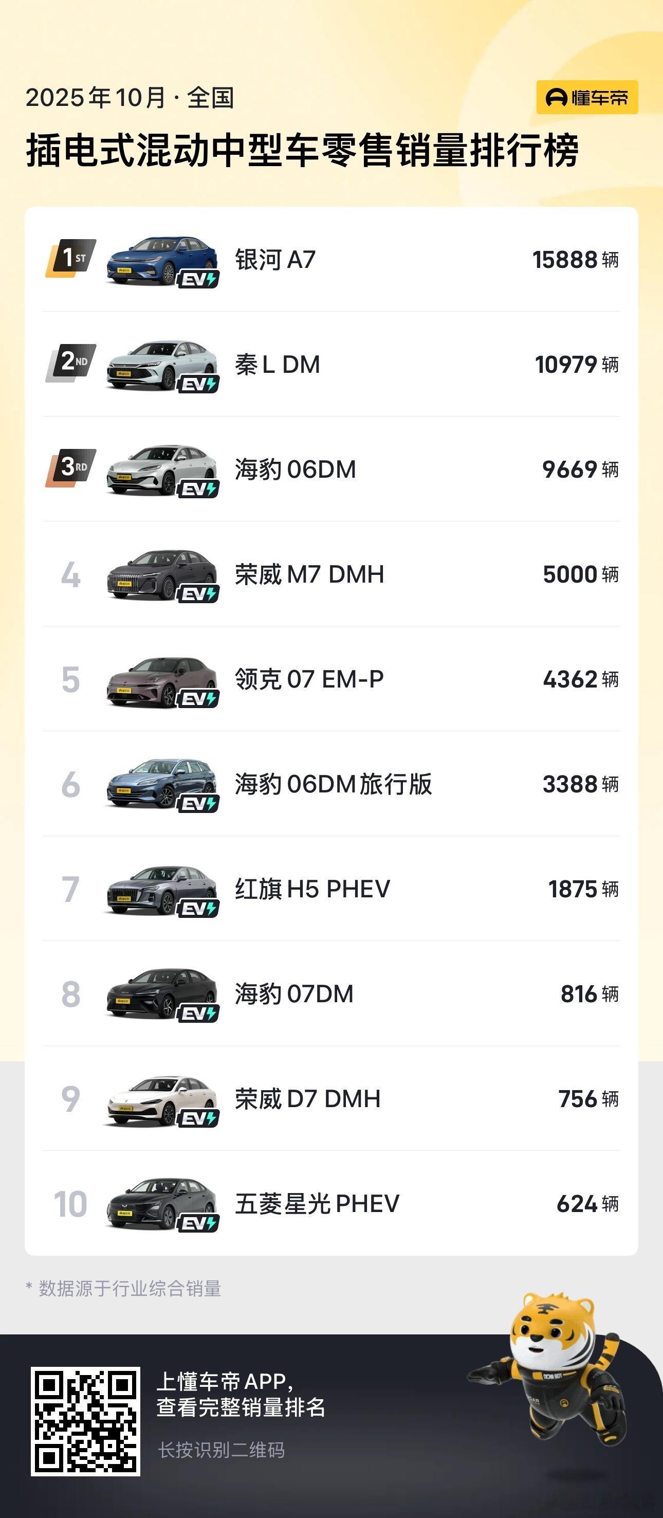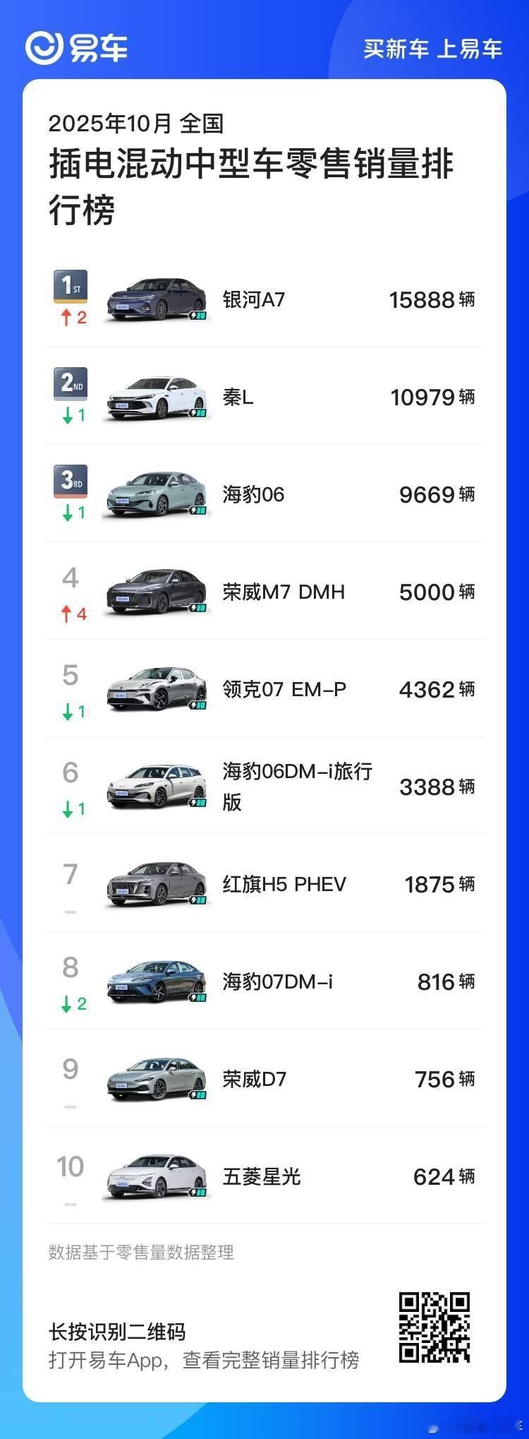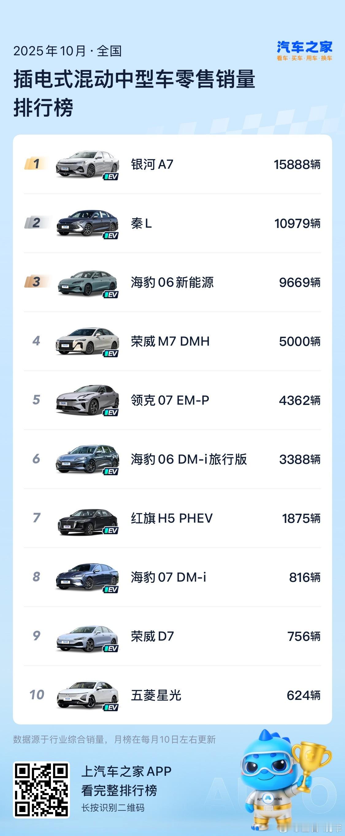 吉利银河A7 销量冠军🏆连续三个月,月销破万10月热销15888辆插电式混动中型车销量第一吉利银河达成年销百万