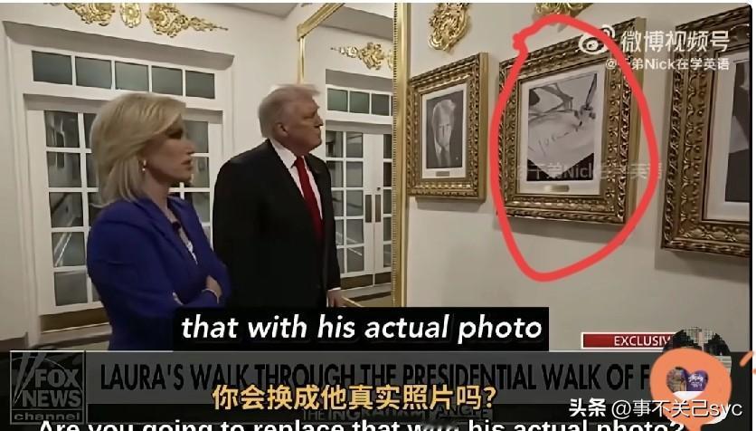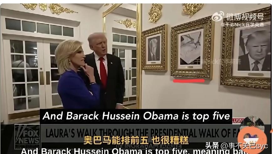 特朗普带领他的政治盟友英格拉汉姆参观白宫总统画廊—— 白宫有一个“总统星光长廊”,历任美国总统在此都有一席之地(本人相片),唯独拜登例外,他的相片的居然是一张自动签字笔图片。 英格拉汉姆:“这谁想的点子?” 特朗普:“我啊!所有点子都是我的。拜登是美国史上最差总统,奥巴马最差的前五,也很糟糕。” 劳拉·英格拉汉姆(Laura Ingraham),是美国保守派媒体人、福克斯新闻节目《英格拉汉姆角度》(The Ingraham Angle)的主持人,以强硬的保守派立场和对特朗普的支持而闻名。 政治盟友才有这样的待遇。