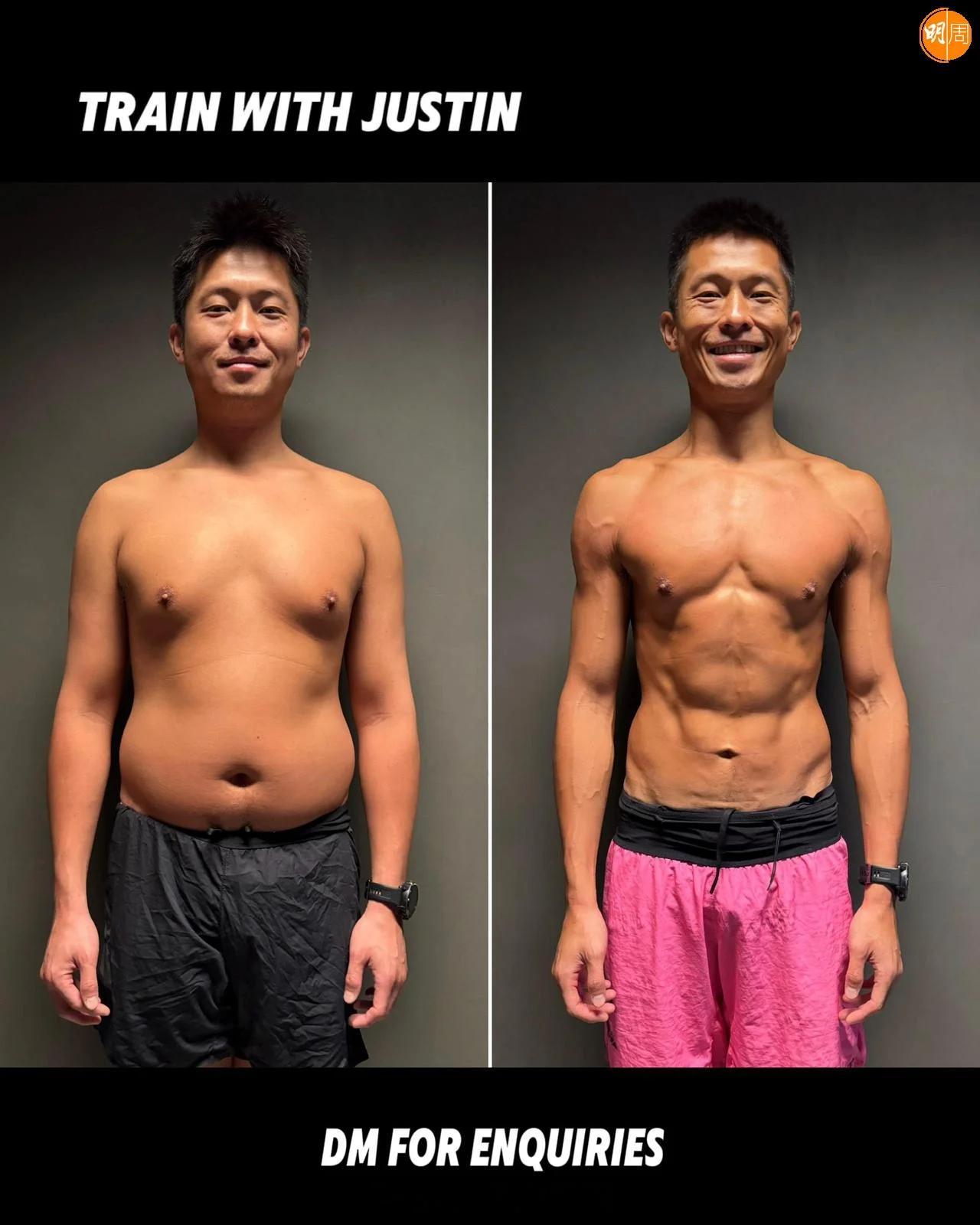 方绍聪晒减磅增肌成果  花半年时间成就更好的自己38岁方绍聪(奶仔)曾演出《特技人》、《坚离地爱坚离地》、《食脑丧B》等剧集及主持《野外步出》令观众留下印象,向来好学不倦的他,除了持有10款车牌,又有二级船牌、潜水教练牌、滑雪教练牌等,近期更转型做推拿师。近日奶仔在社交网分享半年来的新挑战,留言:“一向喜欢接受不同挑战及学习更多事物,让自己不停进步,更了解这个世界。始终认为,不进则退。这次挑战的主题比较特别,是自己的身体。半年时间,成就更好的自己。”奶仔晒出由83公斤减至66公斤,成功打造钢条形身的照片,并分享三个训练主要三个要点:热量赤字、力量训练、持之以恒。“1.热量赤字,食物营养管理(适当份量,每日摄取大约1800卡路里):气炸锅番薯(红春香 & 鳗鱼番薯)+南瓜+薯仔+鸡扒+三文鱼扒+广岛蚝、Subway潜艇堡、蒸鱼饭+北菇鸡饭、潮州打冷盐水鸡+乌头、麦当劳板烧鸡腿包+沙律(套餐转粟米)、白切鸡、豉油鸡、手撕鸡、泰式烧鸡+烧牛肉、白灼虾、谭仔gymgym餐、Chicken Factory烧鸡、牛筋腩米粉、无尽菜+菇、寿司、烟三文鱼、蒸粟米、金奇异果、黑咖啡、无糖可乐、梳打水、远离酒精“2.力量训练:每周三次一小时力量训练;每天步行至少10000步;每星期三次40分钟带氧运动(非教练要求)“3.持之以恒:在这半年的增肌减脂旅程,经过Justin教练的耐心指导,让我一步一步了解营养及运动科学,看到自己体脂率越来越低,运动能力成正比逐步提高(颈紧背痛、膝头痛楚、下腰疲劳减少、跑步能力提高、肥仔波变胸肌、呼吸更加畅顺、睡眠质素提高、鼻鼾声音量收细),这是最令我能够坚持的最大原因。”奶仔直认人总会有迷失的时候,幸得教练都会鼓励和提醒,现在半年时间已过,他也终于成功达成目标,得到一个更好的身体,最后他除了多谢教练外,亦多谢自己。