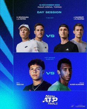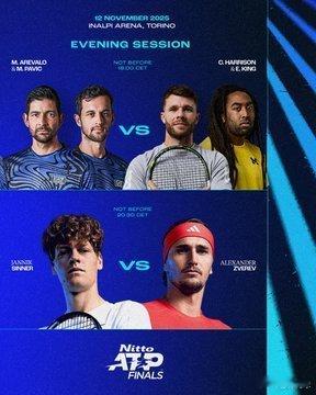 ATP年终第四日21:00,🇺🇸谢尔顿vs阿里亚西姆🇨🇦03:30,🇮🇹辛纳vs兹维列夫🇩🇪交手记录:谢尔顿0-1阿里亚西姆,24年法网小黑三盘直落;辛纳5-4紫薇,辛纳最近4连胜。看好辛纳和小黑?