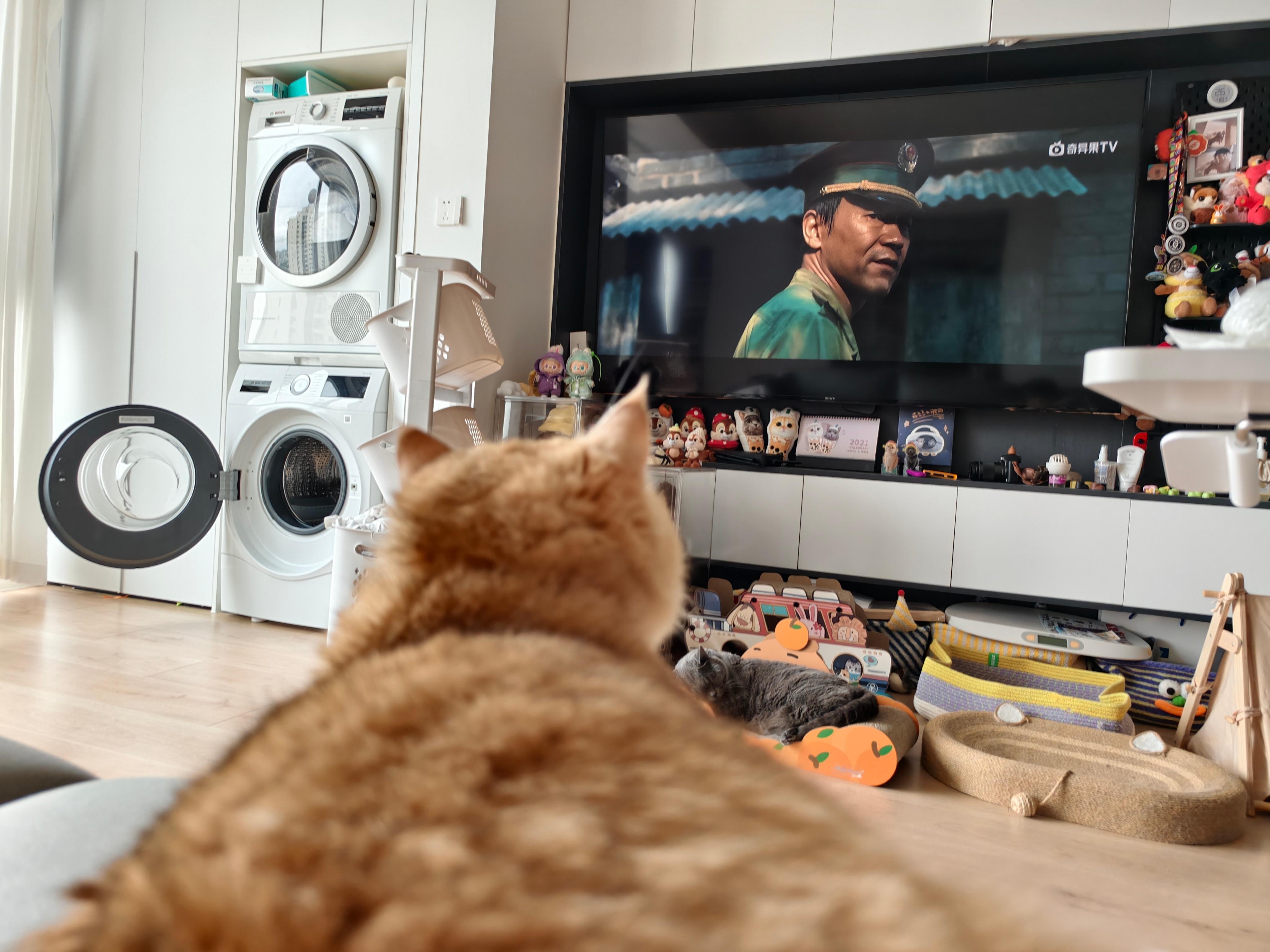 肥四看到假猫陪我看电视,跑来一起躺电视剧里发现受害者的时候她还猛地抬头看!