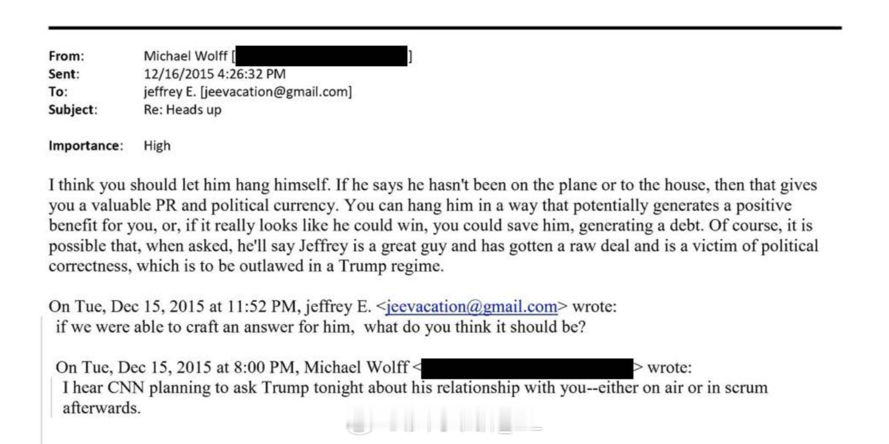 美国众议院监督委员会新公布的电子邮件显示,杰弗里·爱泼斯坦曾多次提到特朗普很清楚他经营的皮肉生意,且曾在爱泼斯坦家里与爱泼斯坦的受害者共处过。