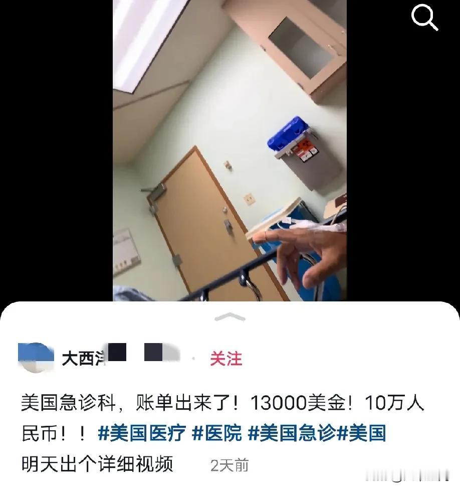 有个博主带着孩子去美国,说要去开拓眼界,要让孩子自己去看看,然后没过多久,生病去了美国医院的急诊科,账单13000美元,折合人民币10万元,确实是开眼界了,估计要开始控诉美国医疗坑人了!难怪网上很多在美国的华人,生病都是攒着,然后周末放假飞到上海看医生,再飞回去,非常方便,当天到,当天就可以看到医生,还可以在上海吃喝玩乐一天,再飞回去美国,包括飞机票和住宿以及医药费加起来,比美国的医药费还要便宜很多,关键是当天到医院就可以看到三甲医院的医生,在美国,估计要提前一两个月预约,所以逼着它们回国看医生!