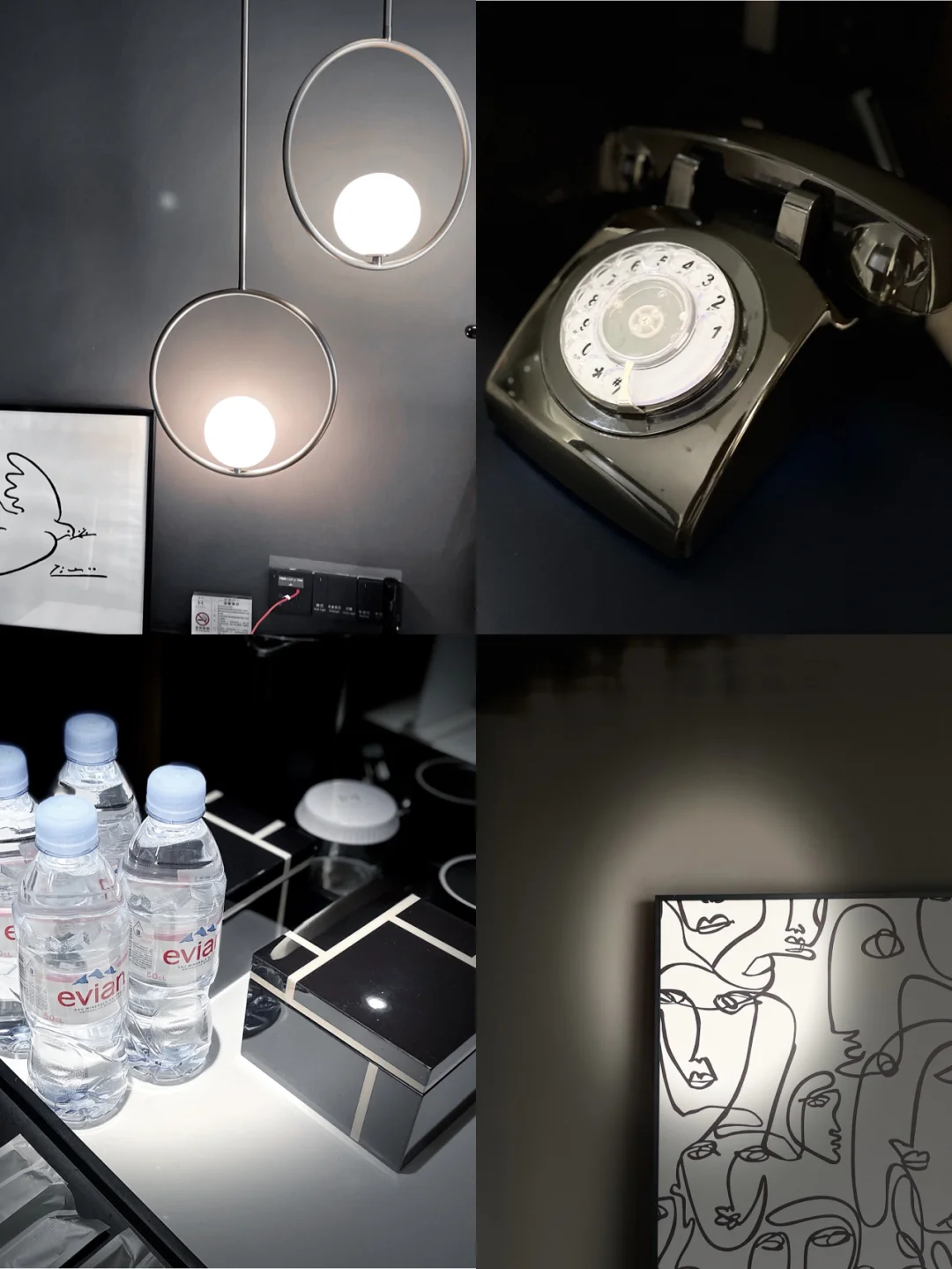 ▪️艺术感十足的设计风格:灰金暗调,每一个装饰品都感受到浓浓艺术味,拱形窗户、复古的电话☎️、独特的壁画……