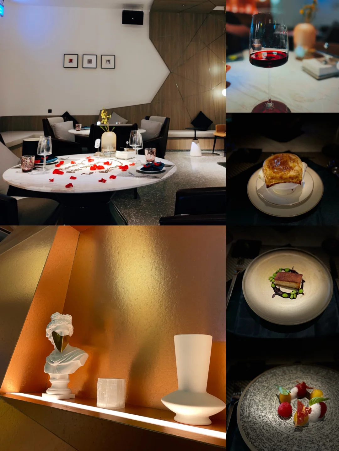 ▪️酒店一楼有一个高端的西餐厅 味Mei by Eastern[地点],也是满满的设计感,刚好还碰到有人预订了生日布置,洒了玫瑰花瓣和用咖啡豆拼成的字,超级浪漫的🌹