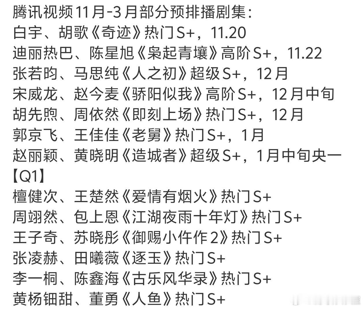 瓜主爆料杨紫、胡歌《生命树》和赵丽颖、黄晓明《造城者》有望对打,但是最新排播片单里没有生命树这剧不是刚拍完吗没这么快吧