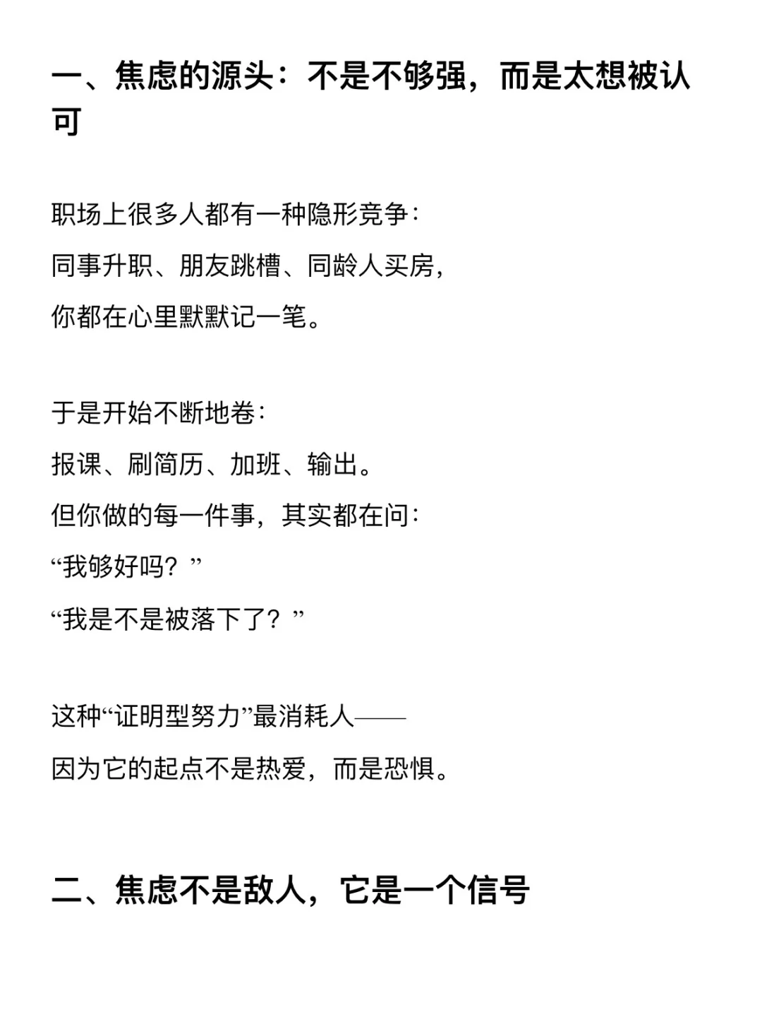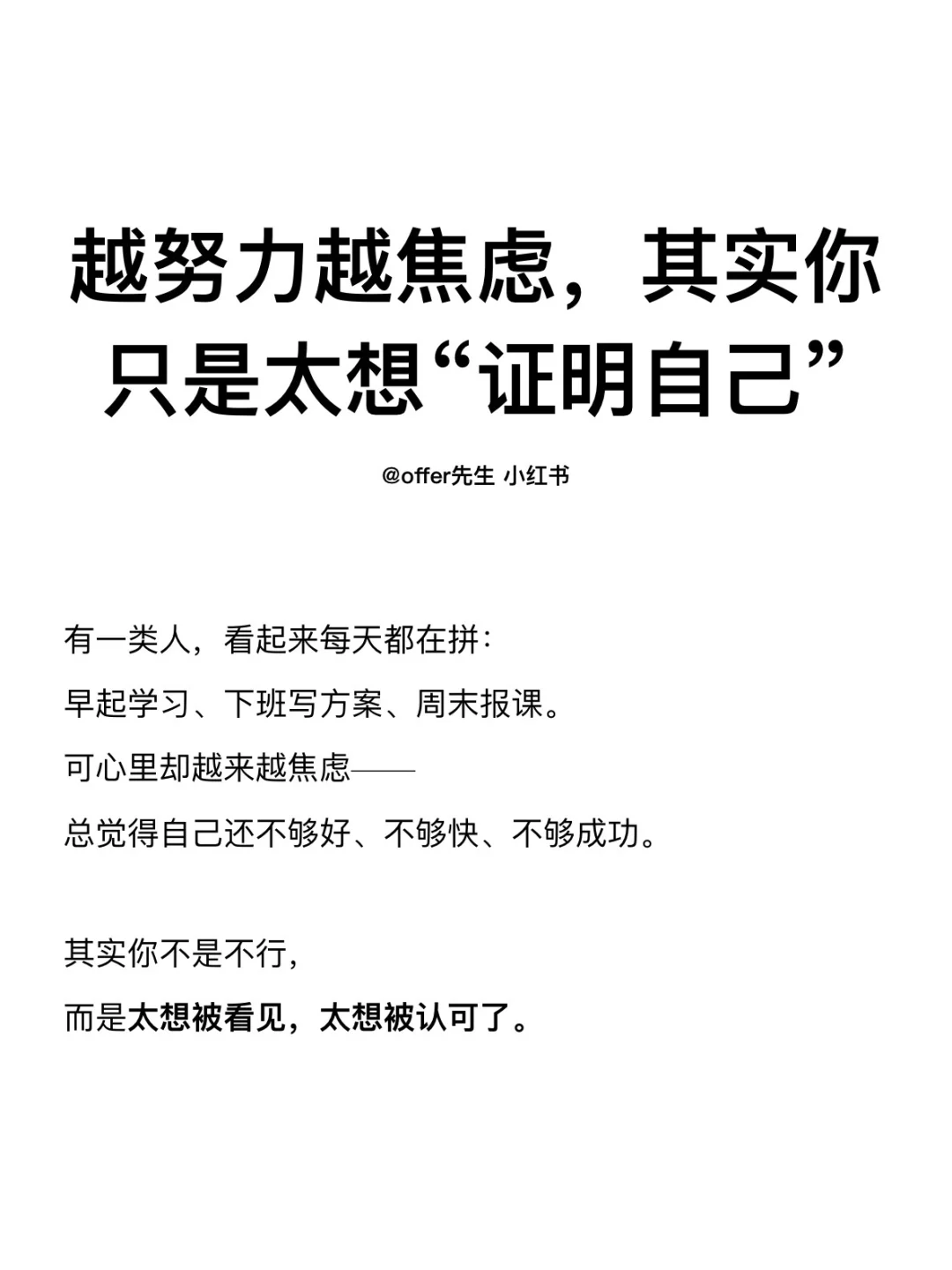 有一类人,看起来每天都在拼: 早起学习、下班写方案、周末报课。 可心里却越来越焦虑—— 总觉得自己还不够好、不够快、不够成功。 其实你不是不行, 而是太想被看见,太想被认可了。
