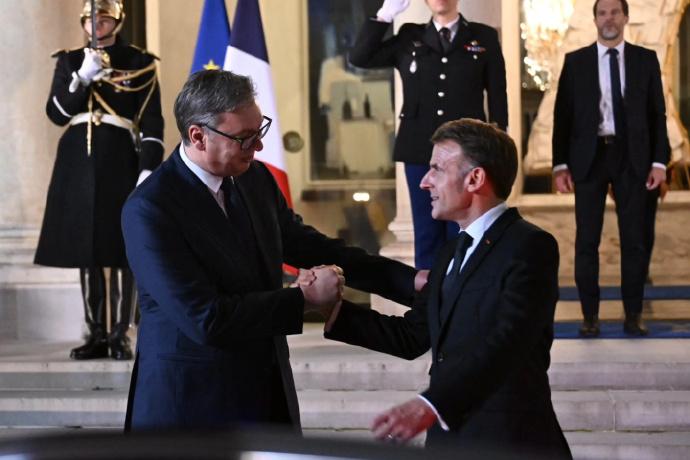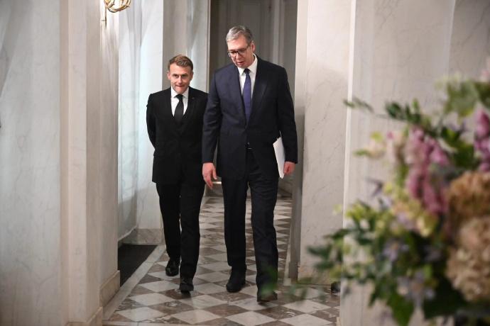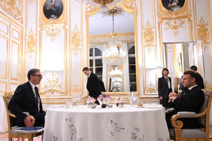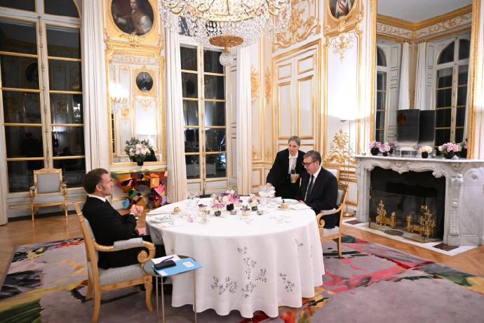 武契奇抵达法国访问,还和马克龙单独就餐! 11月13日,武契奇去法国访问了,法国总统马克龙热情接待了武契奇的到来,画面中,两人像很久没有遇见的朋友,又是握手又是拥抱,当然了这次武契奇去法国也是也和马克龙谈点干货,就是关于塞尔维亚核能的发展。经过武契奇的深入思考,他们以后很可能用法国的,另外武契奇还谈论了关于阵风战机导弹的采购。 也许是被武契奇的诚意感动到了,马克龙还和武契契单独就餐,两人坐在宽大的餐桌旁,不知道他们聊了些什么。看得出来马克龙也是高规格接待了武契奇。