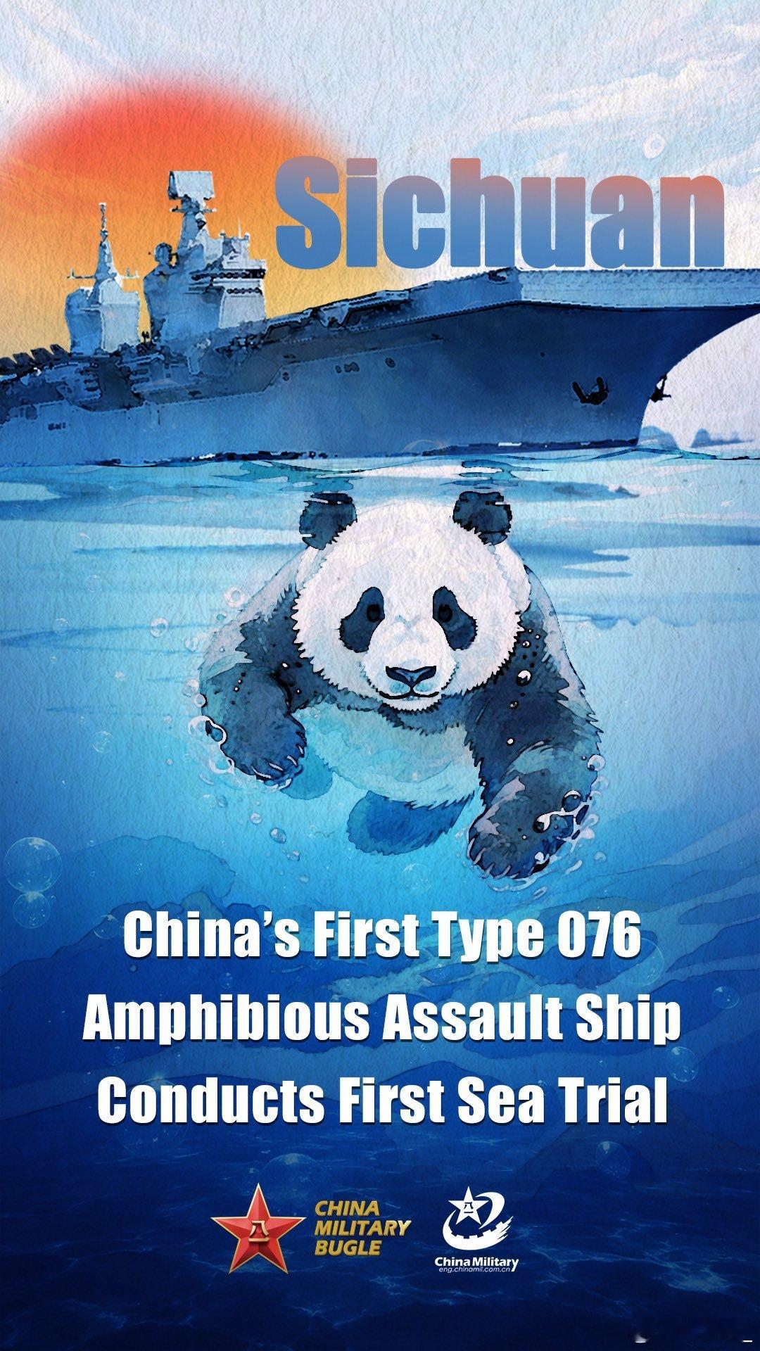 【海军】11月14日9时许,我国076两栖攻击舰首舰四川舰从上海沪东中华造船厂码