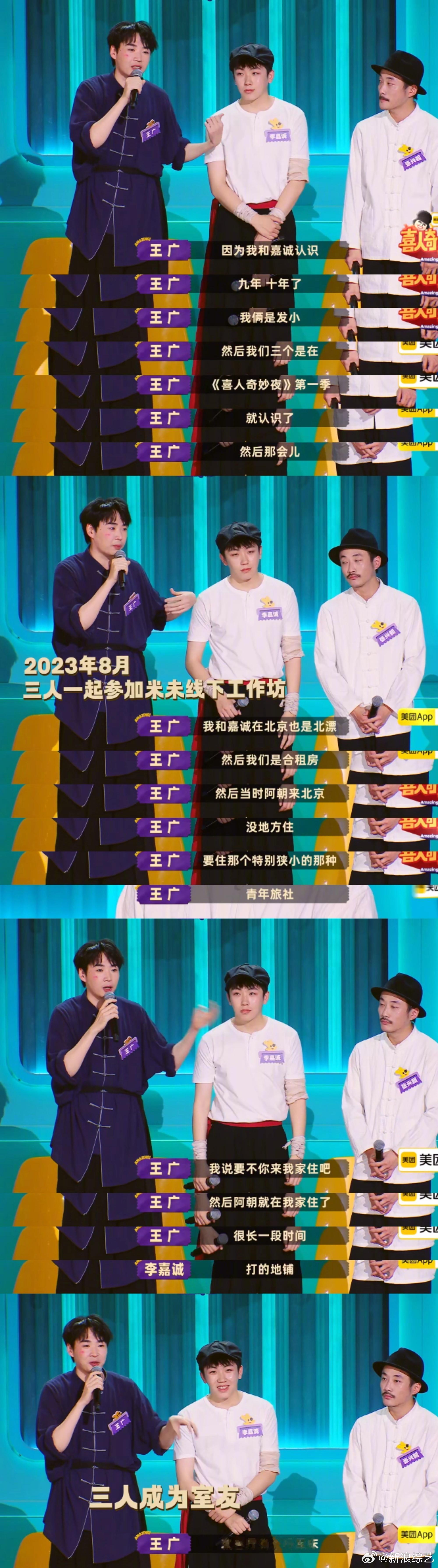 看这段喜人后采直接看哭了!!李嘉诚、王广和张兴朝曾经挤在北京出租屋,一起讨论本子,一起追逐喜剧梦想!曾经各自坎坷的三人互相支撑,如今终于在喜人舞台圆梦!从合租屋到大舞台,这束光终究没辜负少年热血!
