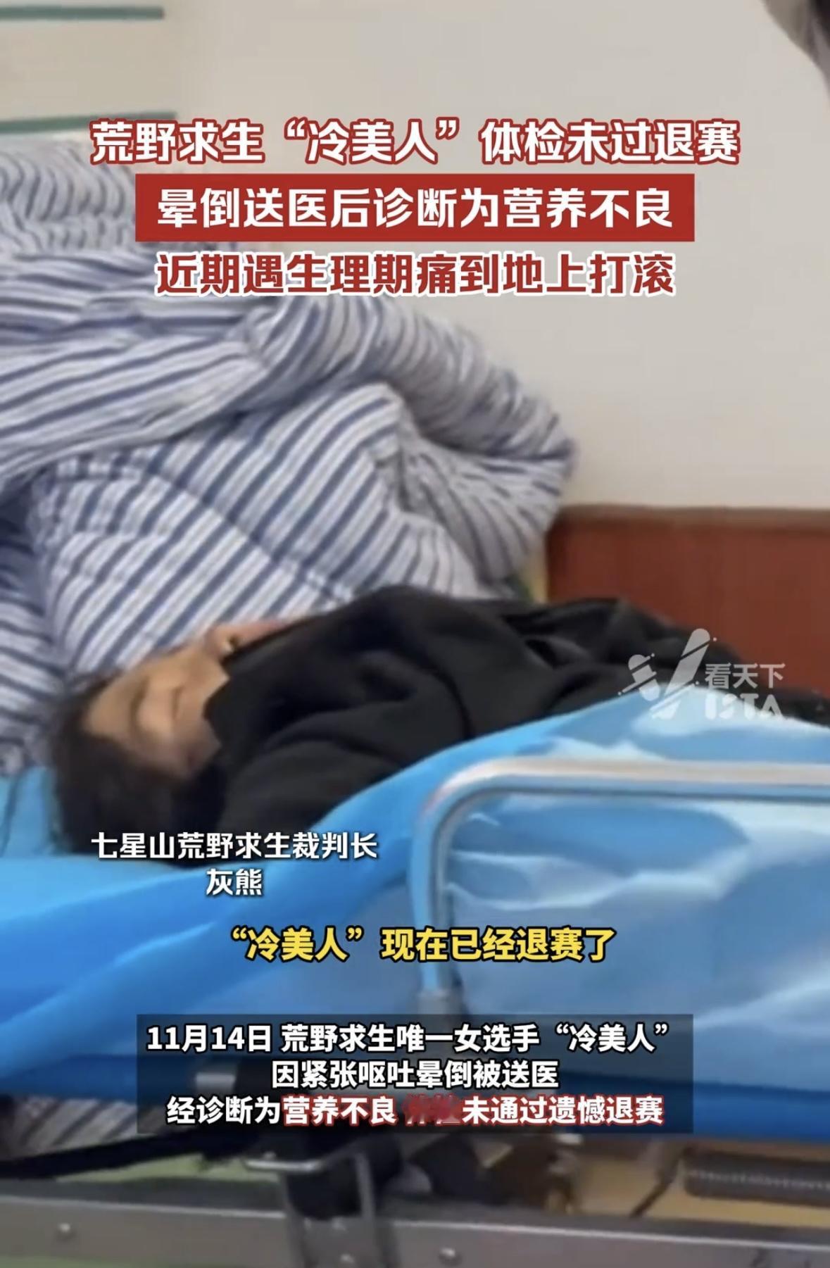 虽败犹荣,你已经成功了,冷美人! 在荒野坚持36天,经历2次经期,留到最后的女选手,真的很厉害了! 人人都说她没实力,全靠硬扛,可是毅力也是一种实力啊! 这一次,她呕吐了,体检的时候又因为紧张直接晕倒了。 工作人员把她送到了医院,都是人抬到病床上的,还在给她喂吃的,身体确实透支好多。 现在退赛也是好事,别最后赢了冠军但是把身体熬垮了,也是得不偿失。 你们说呢?