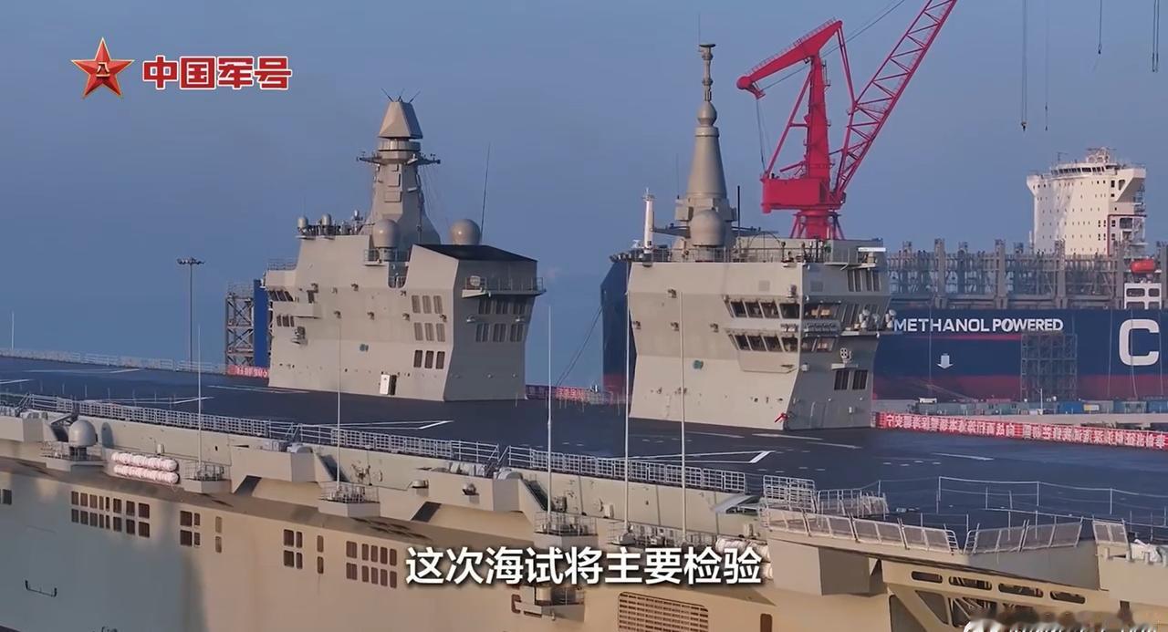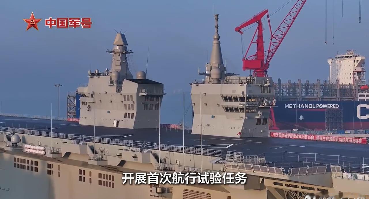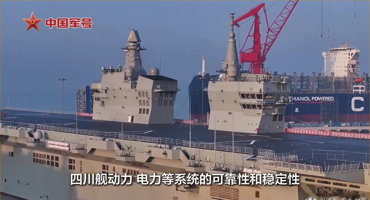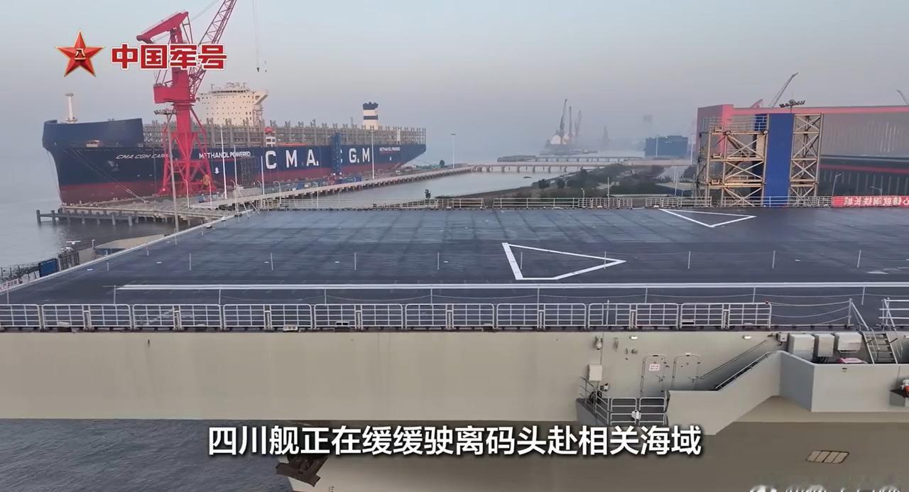 11月14日上午9时许,我国076型两栖攻击舰首舰四川舰从上海沪东中华造船厂码头解缆启航,赴相关海域开展首次航行试验任务。这次海试将主要检测验证四川舰动力、电力等系统的可靠性和稳定性。