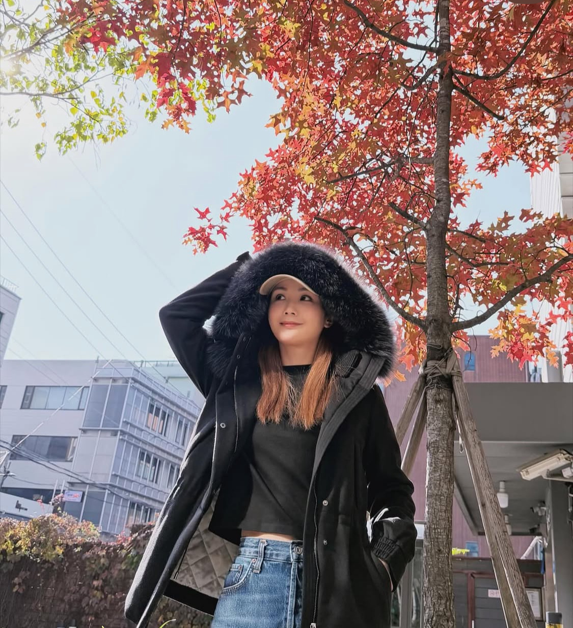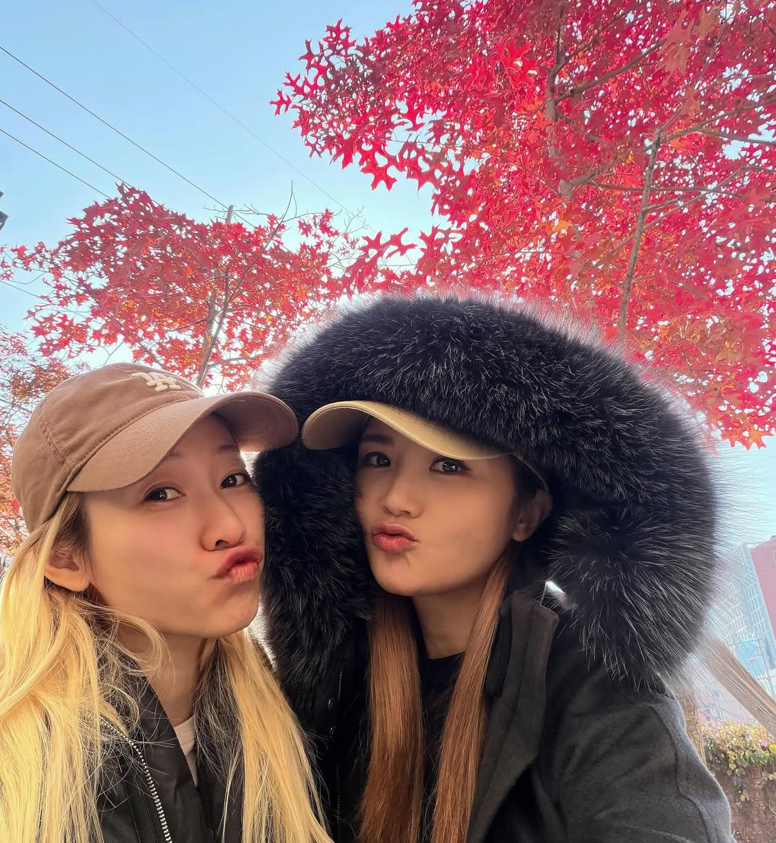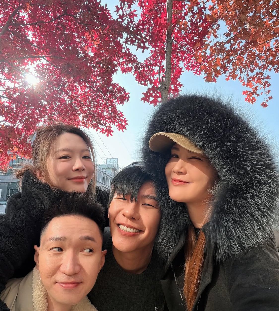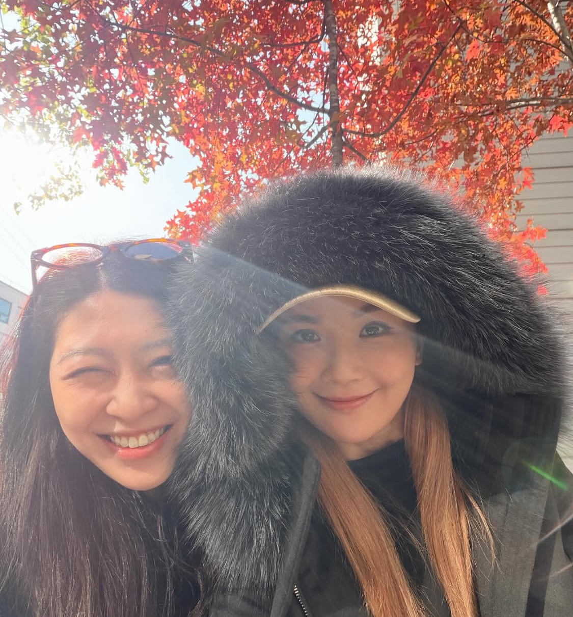 蔡卓妍和妈妈、还有朋友们,一起到首尔旅游赏红叶。阿sa妈妈好年轻!