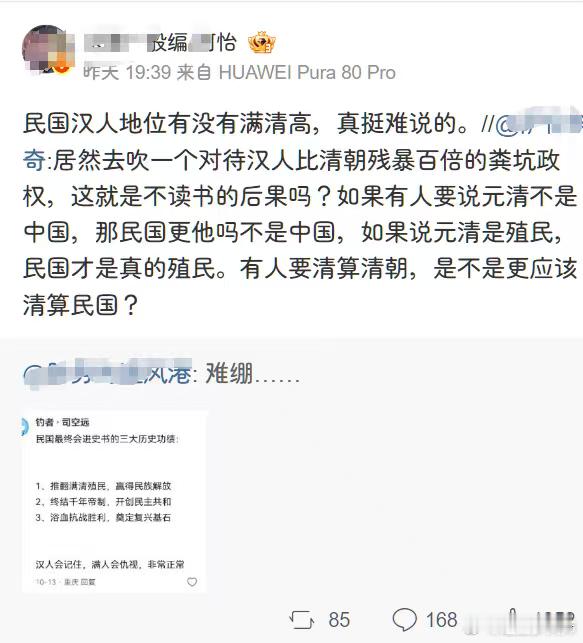 要是洪清的野史被证实的话,我们会看到的是:孙中山先生去世后,同样的士大夫商贾集团加上外国势力,以残酷的412大政变夺舍KMT。清朝本身不用说了,不管这 是不是真的,它显然吸收了投降明朝官员的打法,用八旗对文官形成制衡。不然呢?一个半渔猎的军事集团怎么搞的这么清楚?明朝中后期,明眼人都能感觉到,文官集团看皇帝不顺眼,皇帝就落水,年纪轻轻病死,还有一个不怕宫女勒脖颈的。所以这帮人这套论调,几乎相当于:百姓无不怀念我大清