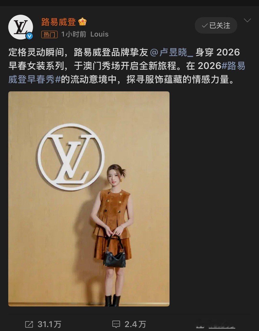卢昱晓官宣LouisVuitton品牌挚友这是什么水平?