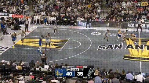 这高度差好恐怖——库里3分文班复制奥运名场面! 图1-2:文班跳起封盖这高度,球和库里之间隔着2个文班手臂长度。 转播方也懂事,立马放出了奥运会上的名场面做对比! 库里1节就10分;半场9中6、3分6中4砍18+1+1;连文班这长颈鹿也防不住......